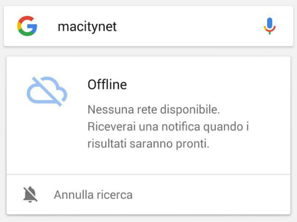 Per poter beneficiare delle ricerche offline non occorre alcun intervento da parte dell’utente, e la nuova opzione risulterà attiva di default nell’app Google su Android. Nel caso in cui il relativo interruttore fosse spento, sarà sufficiente attivarlo. Il funzionamento delle ricerche offline è assolutamente intuitivo. Quando si effettua una ricerca in totale assenza di connessione a internet, sia WiFi che su rete 4G, Google non si limiterà a restituire il classico messaggio di errore, ma informerà l’utente che una notifica apparirà a schermo non appena la ricerca sarà pronta.