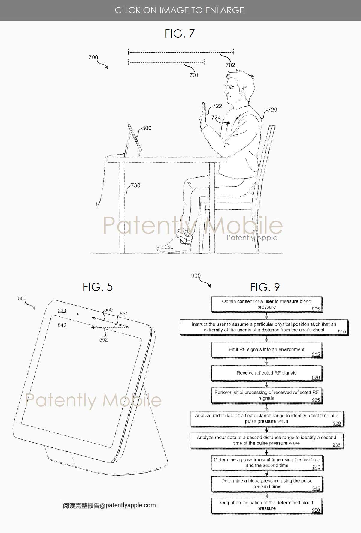 Lo riferisce il sito PatentlyApple evidenziando un brevetto di Google scovato in Europa. Nel brevetto in questione si fa riferimento a un metodo per la misurazione della pressione sanguigna sfruttando sensori radar e segnali a radiofrequenza (RF) che l’utente potrebbe usare comodamente da seduto, collocando la mano davanti a un display.