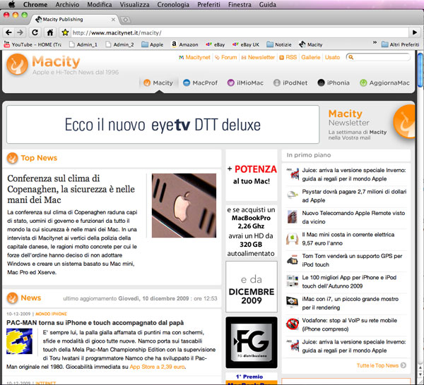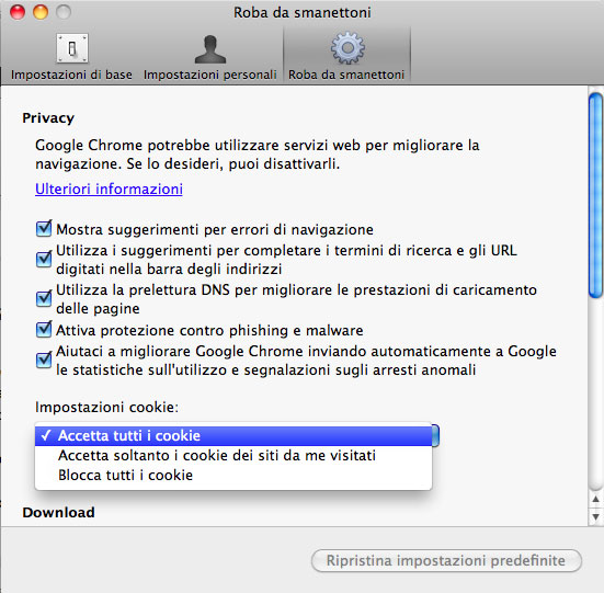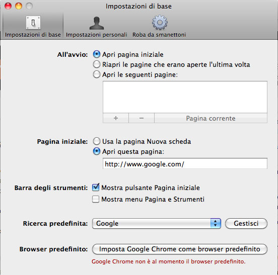 Al primo avvio comunque Chrome importa i nostri preferiti da Safari alleviando parzialmente all’inconveniente e permettendoci di effettuare le prime sperimentazioni. E’ poi possibile aggiungere nuovi preferiti ma non organizzarli in cartelle. Mancano anche il gestore per i cookie e la gestione per i certificati, infine qualche problema di giovinezza lo si paga anche in termin di scorciatoie da tastiera. Per esempio l’abituale comando Mela e simbolo + per ingrandire la visuale sulla pagina Web corrente non funziona. La scorciatoia di serie è infatti Mela più il simbolo dell’uguale, costrigendoci così sui portatili a premere il tasto mela, il tasto shift e il tasto 0 per l’uguale. Nulla di preoccupante anche se un poco fastidioso.