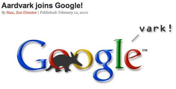 E’ notizia delle ultime ore l’ennesima acquisizione di Google. Questa volta il colosso del web ha acquisito Aardvark, una promettente start up di social search di cui abbiamo parlato in passato.