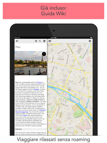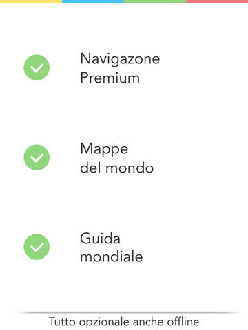 Non solo: oltre al prezzo particolarmente abbordabile dell’app, solo 1,79 euro, gli utenti possono aggiungere funzionalità completamente offline, per usare l’app senza dover affrontare gli elevati costi del roaming quando ci si trova all’estero. Così è possibile utilizzare il negozio in-app per acquistare singoli paesi a 2,69 euro, interi continenti a 5,49 euro oppure il materiale cartografico mondiale a 9,99 euro. Effettuando questi acquisti opzionali le mappe acquistate vengono registrate nella memoria di iPhone e iPad, risultando così fruibili anche senza collegamento a Internet.
