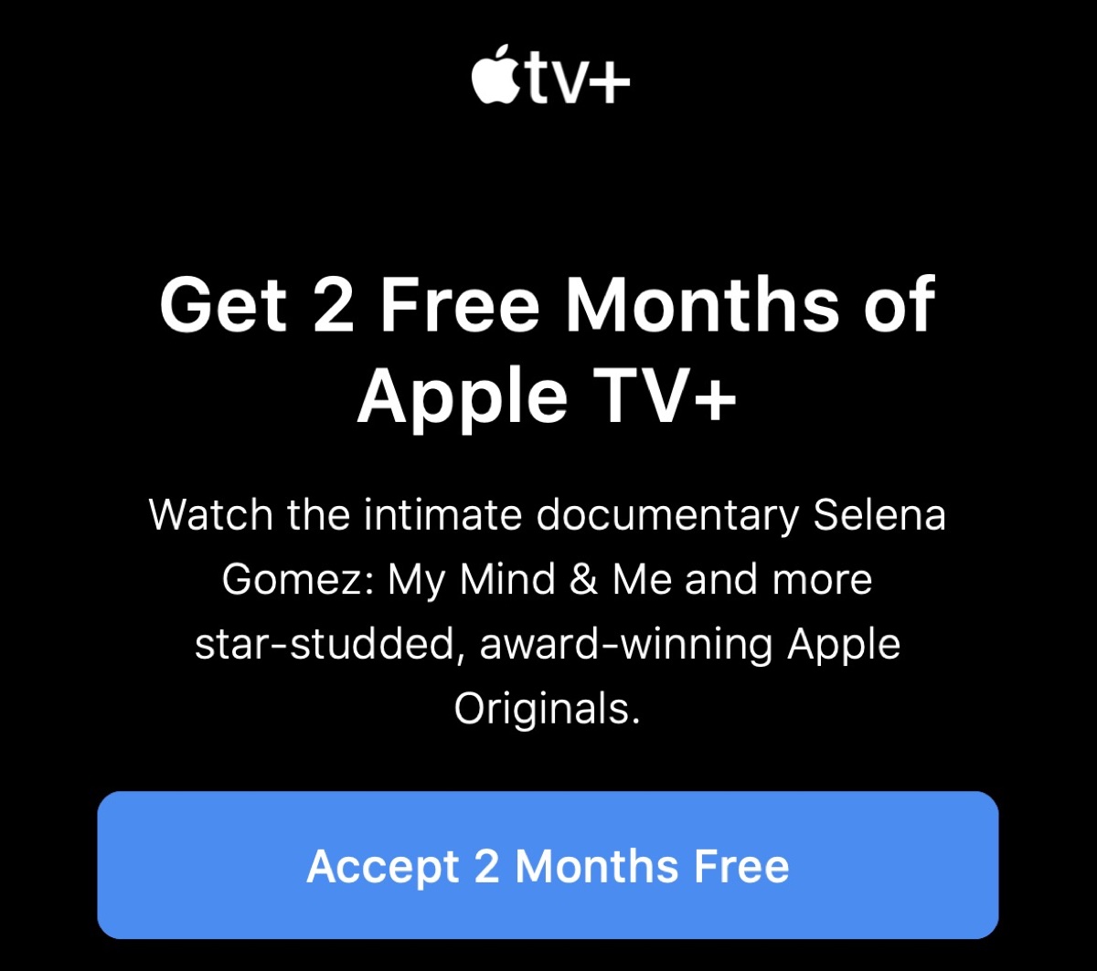 Apple non è famosa per concedere promozioni, super sconti e nemmeno regali, ma questa volta grazie all’accordo con Selena Gomez per promuovere il suo ultimo docufilm My Mind & Me, tutti possono usufruire di due mesi di abbonamento Apple TV+ gratis, anche chi è già stato abbonato e non lo è più.