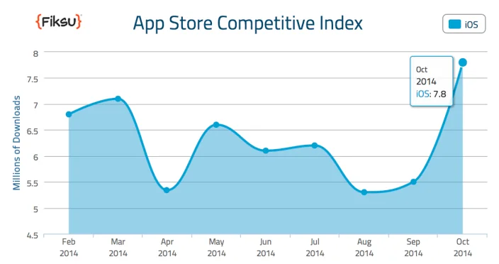 Il rapporto sottolinea che il risultato record è da attribuirsi tendenzialmente al rilascio dei nuovi iPhone sul mercato. Infatti, molti dei download che hanno contribuito all’incremento del 42% derivano dall’acquisto di un iPhone 6 o iPhone 6 Plus: al cambio di smartphone segue l’immediato download di tutte quelle applicazioni ritenute vitali dall’utente.