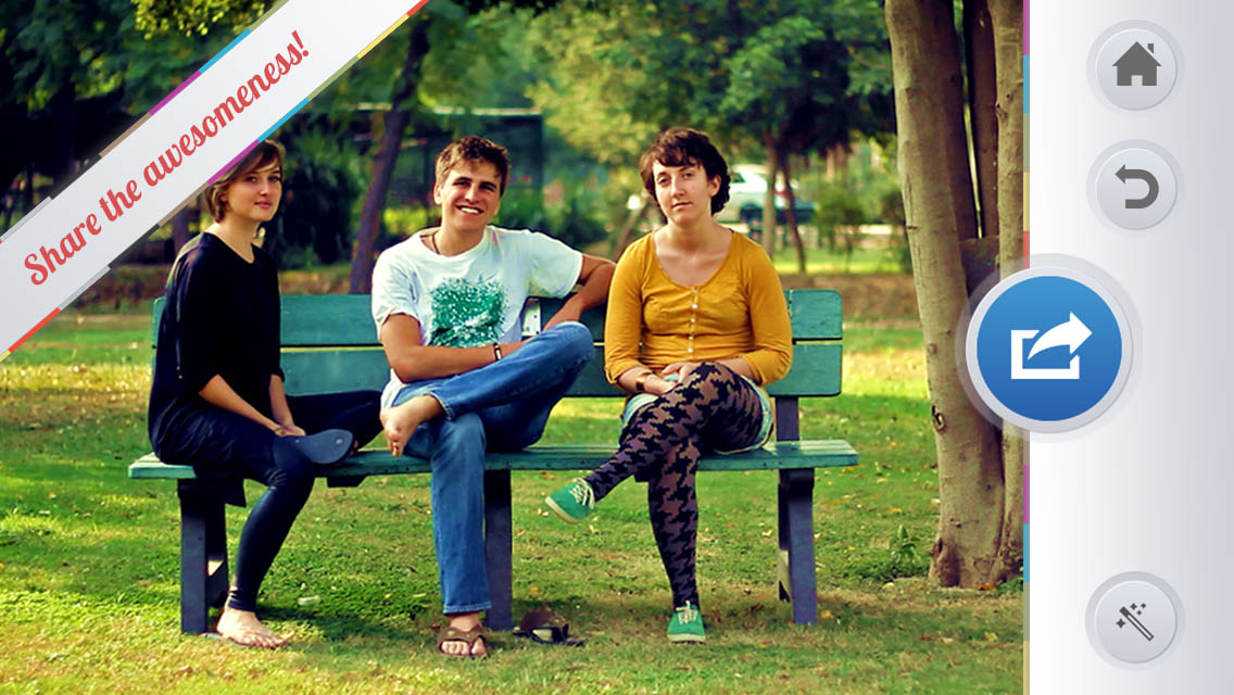 L’utilizzo di groopic è facilissimo. Si scattano due foto dandosi il cambio dietro l’obiettivo. Si indica poi all’iPhone quale dei soggetti nella seconda foto è il fotografo e l’app unirà automaticamente le due immagini, restituendone una sola con il gruppo ricongiunto. Insomma, tutto pronto in tre tap. Il sofware brevettato che sta al cuore di groopic è stato sviluppato da Eyedeus Lab, giovane startup pakistana, specializzata in tecnologie fotografiche ed elaborazione di immagini nei dispositivi mobili. Con piccoli gruppi di persone il risultato è ottimo, qualche fatica in più con gruppi più numerosi. Groopic offre anche qualche piccolo strumento di ritocco fotografico: sufficiente per aggiustare qualche sbavatura, ma non per effettuare grandi interventi. Le foto possono comunque essere facilmente condivise sui social network o salvate per essere rimaneggiate con altre applicazioni ad hoc.