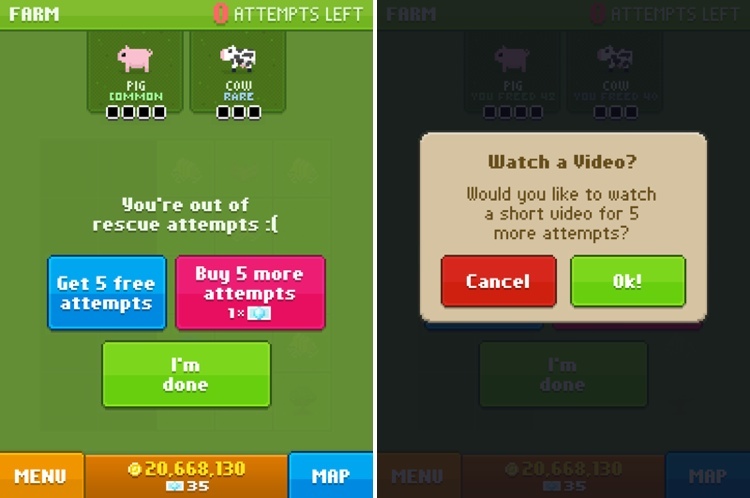 Su App Store esistono diversi giochi, per la maggior parte freemium, che permettono di ottenere gemme, monete ed in generale crediti utili all’interno dello stesso guardando le pubblicità video oppure consentendo l’accesso a Facebook e Twitter per una condivisione con fini pubblicitari.