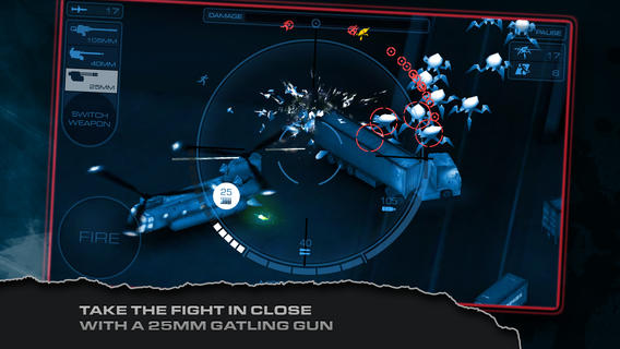L’utente non controllerà direttamente l’aeromobile, bensì l’arma da fuoco. La visuale sui nemici e sugli obiettivi sensibili, dunque, verrà gestita autonomamente dalla CPU, che conferirà quasi un taglio televisivo all’azione di gioco. I giocatori, comunque, utilizzeranno il dito spostare la visuale all’interno dell’area sensibile, mentre gli altri controlli permettono di sparare, cambiare arma e utilizzare missili speciali, per far fronte agli attacchi di particolare intensità.