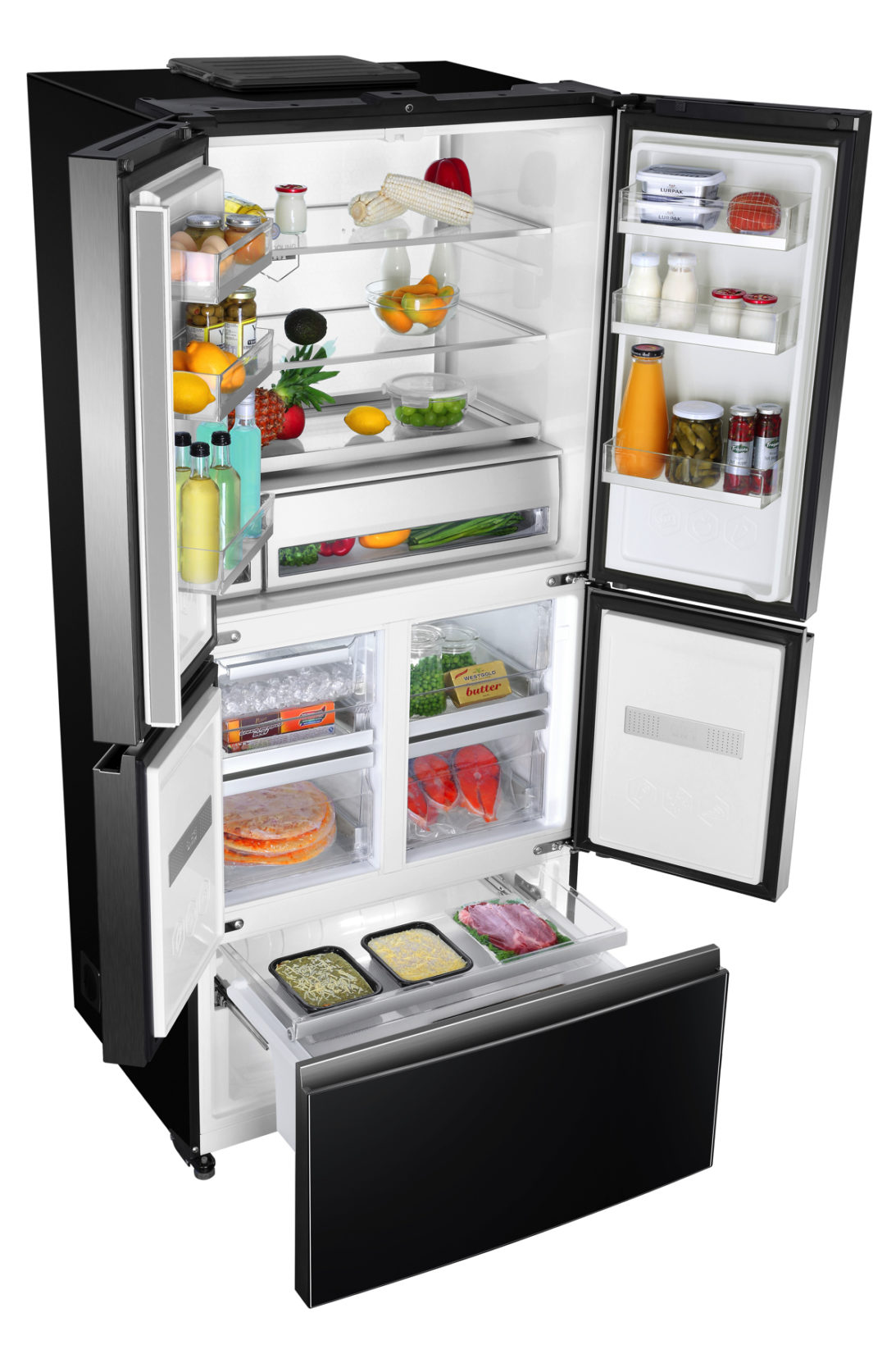 Nello scomparto Antioxidant Zone Haier F+ controlla i livelli di ossigeno per conservare i sapori e le proprietà nutrizionali di frutta e verdura: in pratica viene aspirato l’ossigeno riducendone i livelli, una soluzione che non solo migliora la conservazione ma permette di ridurre anche gli sprechi. Questa tecnologia è giàù stata testata ed è garantita dal centro indipendente di certificazione tedesco VDE (Testing and Certification Institute). Un altro scomparto denominato Fast Freezing Zone è dedicato al congelamento rapido che accelera il processo di congelamento raggiungendo -30°C, preservando così le proprietà nutrizionali ed eliminando i batteri, per un cibo più sano più a lungo. I sensori a infrarossi Fresher Infrared Sensors sono dotati di rivelatori per individuare e raffreddare i differenti alimenti riposti su ogni singolo ripiano. Non solo: il versatile cassetto Switch Zone può essere utilizzato per la refrigerazione oppure per il congelamento, in questo modo l’utente può scegliere se aumentare lo spazio adibito a frigorifero oppure quello freezer a seconda delle esigenze. Haier F+ combina estetica e design curati con la praticità di utilizzo, grazie a porte in vetro ultrapiatte con finiture in metallo, l’angolo di apertura di 90° e il design Easy Access del congelatore. Presente anche il cassetto Auto Drawer Opening: un compartimento con una capacità di 30 kg apribile con un semplice tocco sul display LED integrato. Le prestazioni elevate di questo elettrodomestico di ultima generazione sono garantite dalla tecnologia Total No-Frost che deumidifica l’aria all’interno del frigorifero, eliminando la formazione di ghiaccio e risparmiando al consumatore le noiose operazioni di sbrinamento, per un notevole risparmio di tempo ed energia.