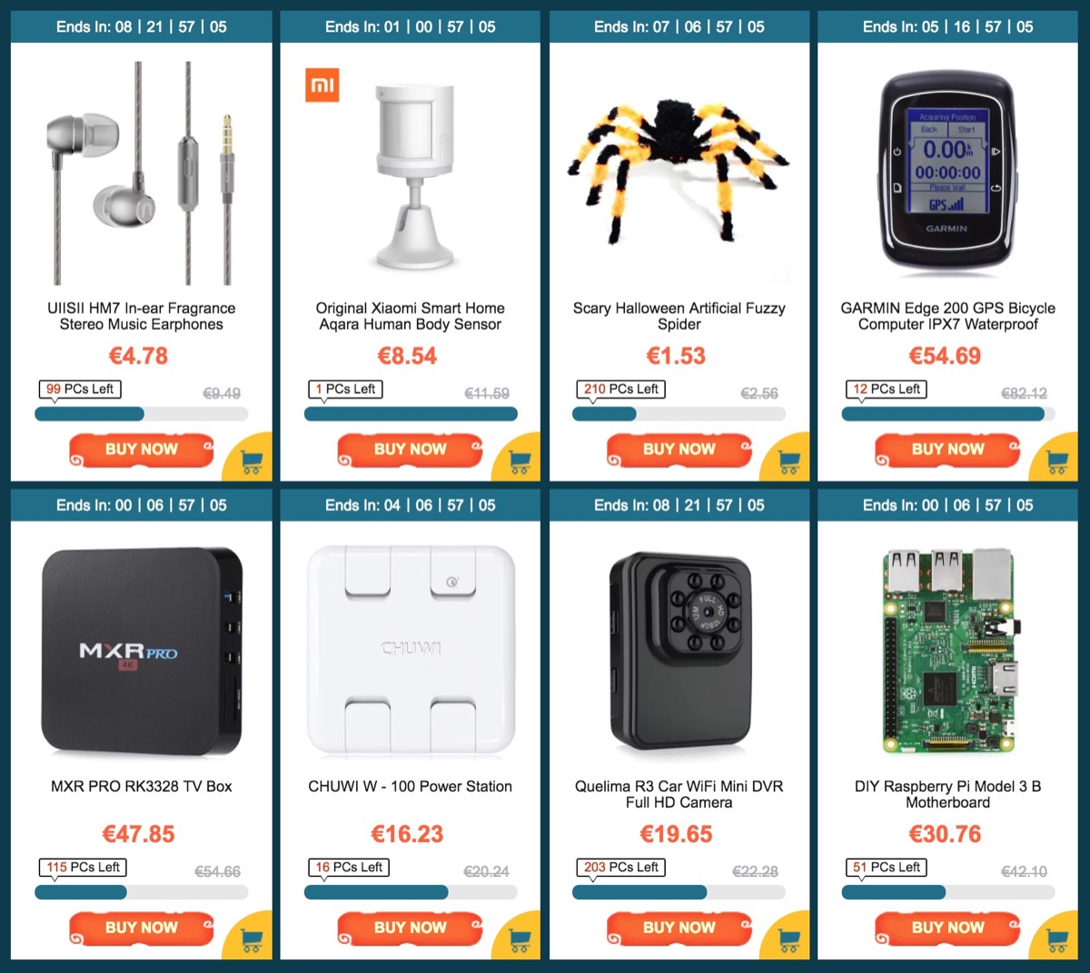 Il distributore ha allestito un’intera vetrina per l’occasione, che propone offerte su decine di dispositivi hi-tech, come ad esempio le cuffie per sportivi a soli 5 euro. C’è anche un box TV a 48 euro e una mini-videocamera a 20 euro, ma come vi dicevamo, tra la tecnologia, ci sono anche prodotti a tema per la festa di Halloween.