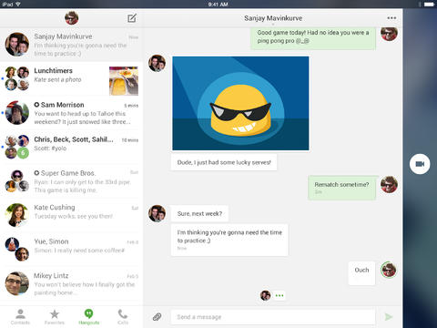 Hangouts per iPad si aggiorna con alcune interessanti ed importanti novità: l’applicazione arriva ora alla versione 2.0, ottimizzata per iOS 7. Il software offre un nuovo design, più consistente con lo stile generale dell’ultima versione del sistema operativo della Mela, in particolare porta con sé un’interfaccia ottimizzata anche per iPad, che permette un utilizzo più agevole e piacevole delle funzionalità integrate.