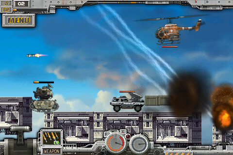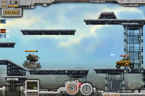 Per controllare il carro armato è sufficiente inclinare il tascabile a destra o sinistra: il carro si sposta nella stessa direzione mentre la velocità dipende da quanto incliniamo il dispostivo. Per sparare occorre toccare con lo schermo sopra il bersaglio desiderato, stesso discorso per controllare il salto del carro armato e per cambiare le armi, grazie ai due controlli posti a sinistra dello schermo. Le istruzioni sono semplicissime ma Heavy Mach è in grado di tenere impegnati per ore e ore grazie a 30 livelli di gioco e ben 800 tipi di nemici diversi da abbattere. Oltre allo sparo normale con il cannoncino che abbiamo a disposizione all’inizio basta toccare il disegno del proiettile in basso per accedere alle altre modalità di sparo, molto più efficaci contro blindati di terra e nemici volanti.