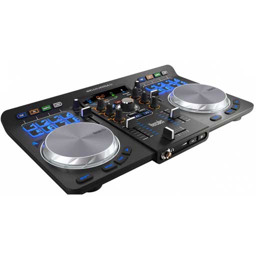 Il controller vero e proprio pesa 1,5 kg ed è caratterizzato da una superficie che misura 40 x 23 cm; presenta 2 manopole rotanti capacitive, 6 potenziometri di equalizzazione e 2 serie da 8 pad, per 4 diverse modalità (Effect/Sample/Loop/Cue). È possibile collegare cuffie (per l’anteprima) e altoparlanti (per la diffusione del mix). Un ingresso stereo ausiliario permette di collegare, durante la festa, un qualunque smartphone o tablet (tramite un cavo inlcuso), accedendo istantaneamente ad una qualsiasi playlist su servizi online, aggiugendo eventualmente effetti e campionature.