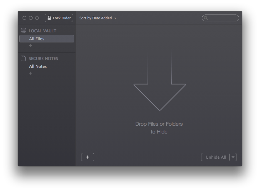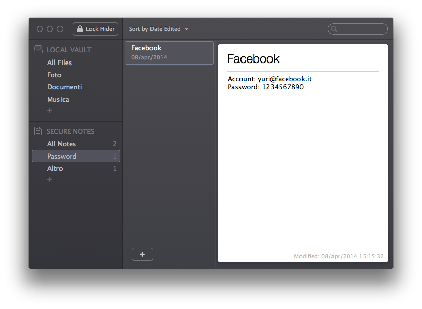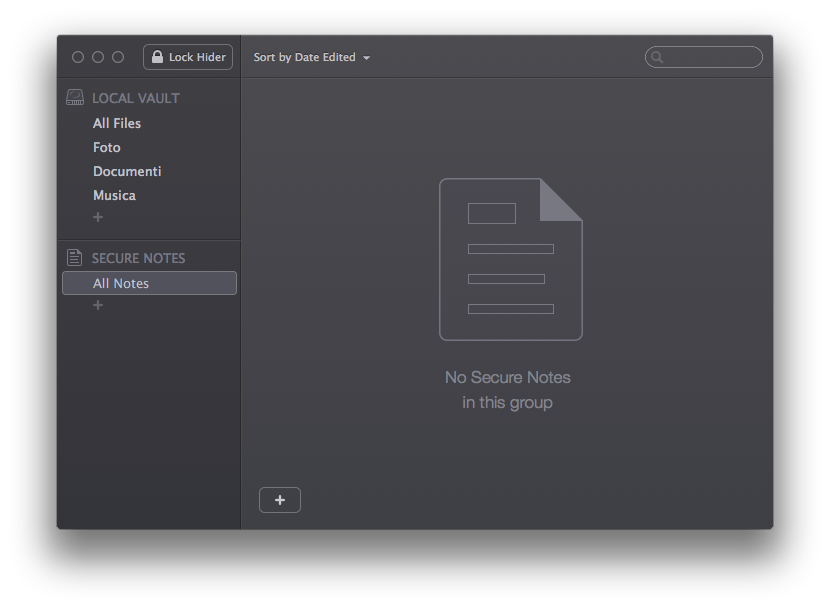 L’app si suddivide sostanzialmente in due aree: sulla destra avremo una sorta di elenco con i file da gestire, mentre sulla sinistra una barra laterale che a sua volta si divide in altre due sezioni; la superiore per i file, e quella inferiore per le note. Grazie ad Hider 2 infatti potremo anche creare delle “note virtuali” dove scrivere tutto ciò che vogliamo: appunti, idee, password e qualsiasi altra cosa vorremo nascondere da occhi indiscreti senza dover obbligatoriamente creare un file specifico.