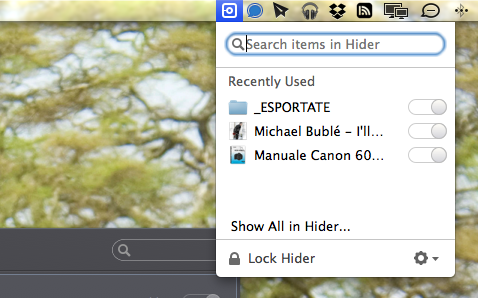 A conferma dell’efficenza di questo software, se proviamo a cercare un file correttamente nascosto, attraverso la funzione di ricerca Spotlight di OS X, il Mac non sarà in grado di trovarlo. Inoltre, grazie all’icona nella status bar, dopo aver inserito la password per accedere al software potremo visualizzare una lista dei documenti recentemente criptati-decriptati facilitandoci le operazioni senza dover utilizzare direttamente l’app.