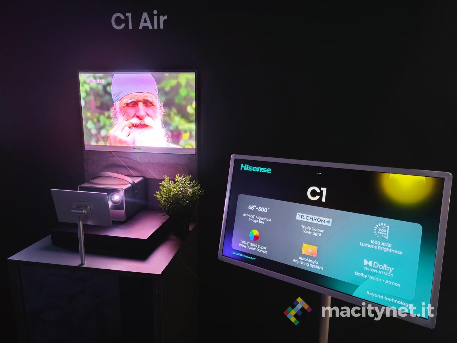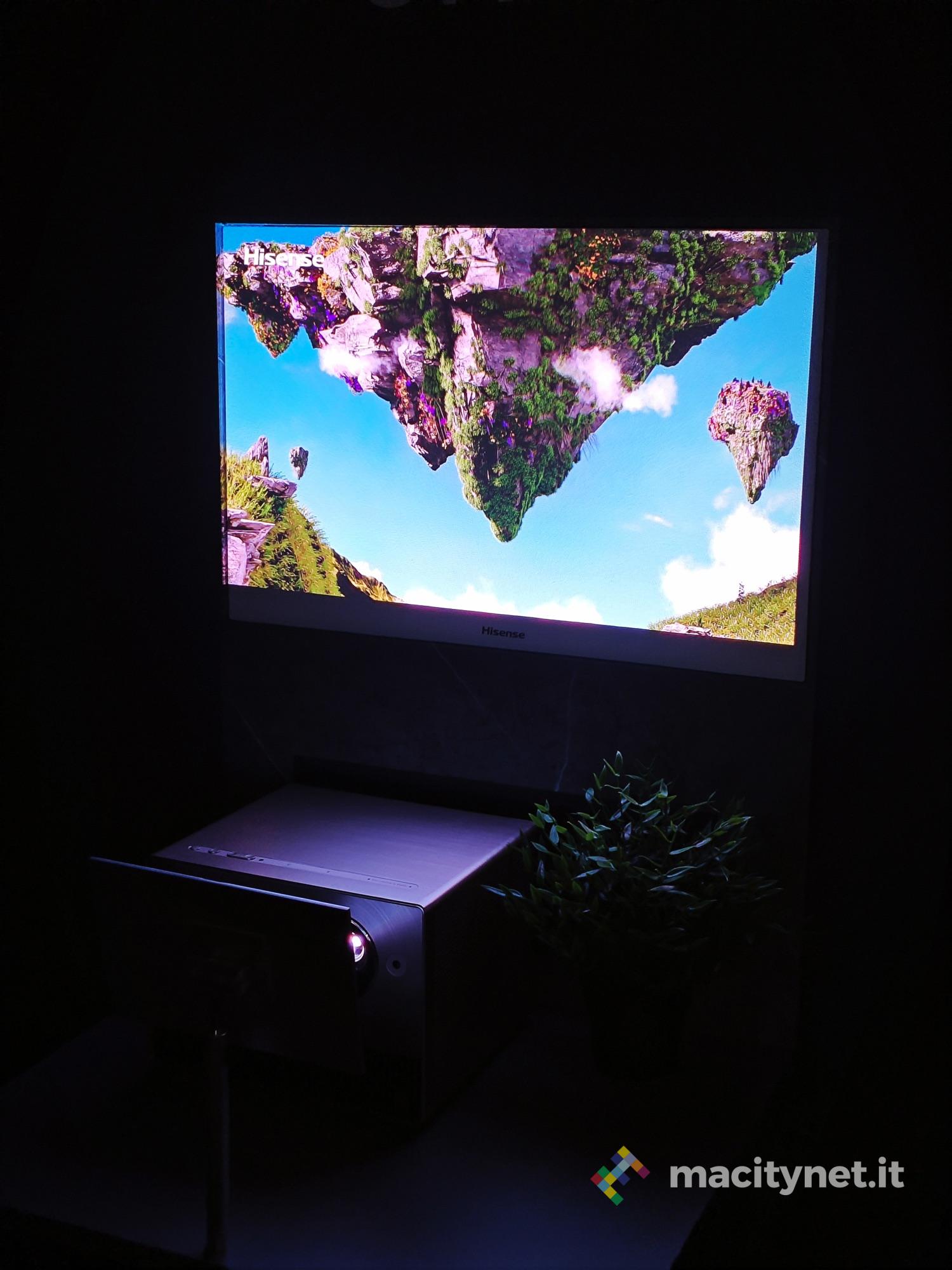 Una soluzione che in molti potranno preferire in casa è quella offerta dal mini proiettore smart Hisense Laser C1, che si propone come un centro di intrattenimento portatile completo, con impostazioni di immagine regolabili.