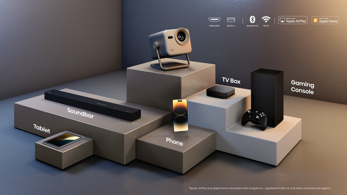 La luminosità è di 1.300 ANSI Lumen, il contrasto di 1000:1. Offre due porte HDMI 2.1, una porta HDMI2.0/eARC, una porta USB, uscita S/PDIF, jack cuffie, una porta Ethernet RJ45, Wi-Fi 5e e Bluetooth 5.0. Supporta AirPlay e Apple Home.