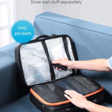 La sua forza è nei vari scompartimenti che permettono di tenere separato il contenuto: ad esempio c’è una tasca per computer portatili fino a 15.6 pollici, due frontali per le cose da tenere sempre a portata di mano, alcune con sistema antifurto sul retro per i documenti importanti, passaporto, carta di credito e cellulare; e poi uno interno, quello espandibile, per giacche, giubbotti e felpe con cappuccio, libri, raccoglitori e tanto altro, oltre ad uno specifico per le cose umide come dentifricio, spazzolino, asciugamano eccetera.