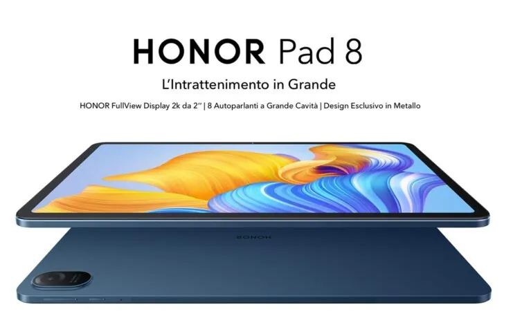 HONOR annuncia in Italia l’arrivo di HONOR Pad 8, il tablet con display HONOR FullView 2K da 12 pollici e otto altoparlanti a Grande Cavità. Ecco foto, prezzi e caratteristiche di questo nuovo tablet Android con Google Play a bordo.
