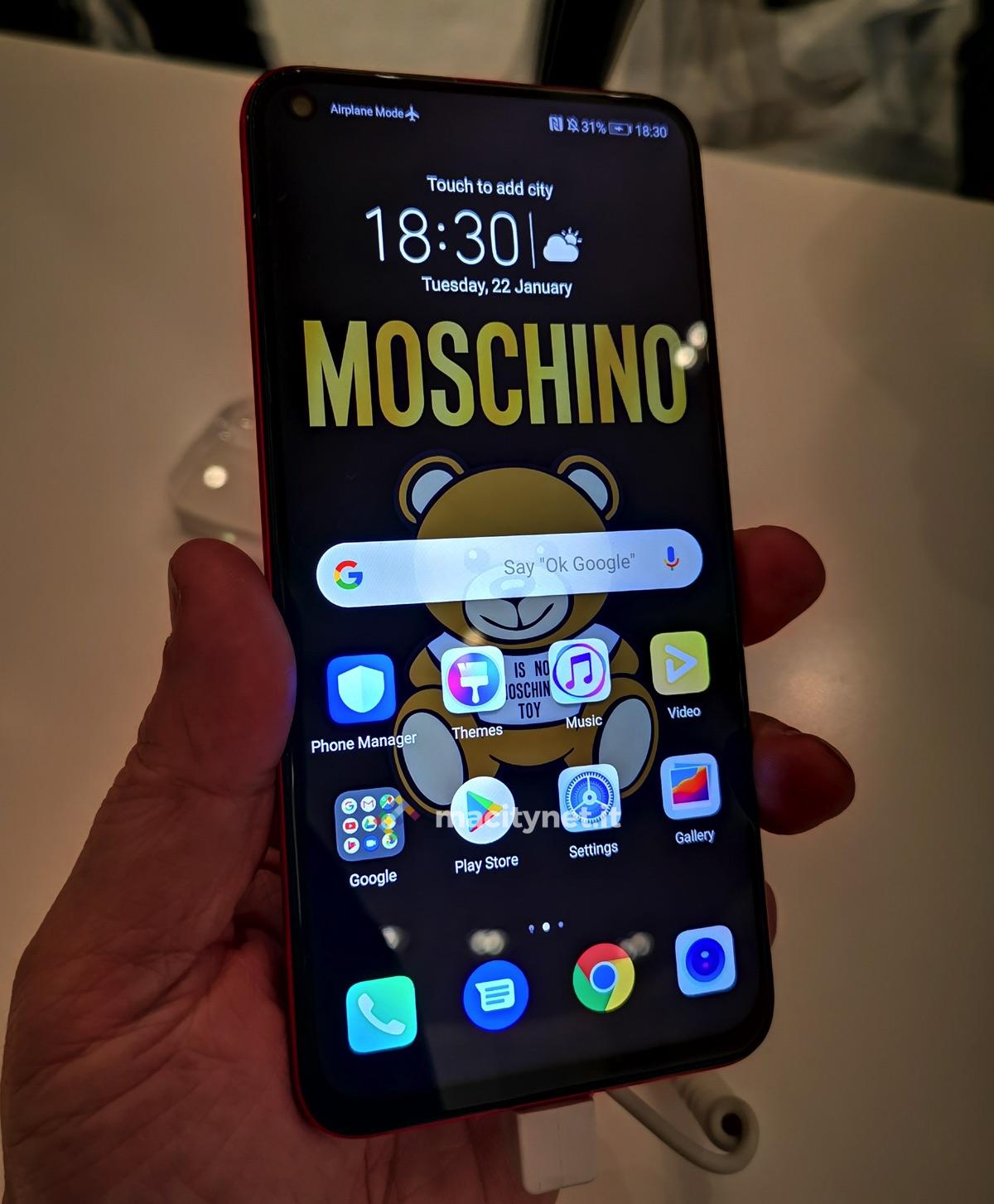 Qui sotto una piccola galleria della sessione dedicata a Moschino dell’evento di presentazione di Honor View 20. Trovate la nuova cover abbinata in versione pressoché definitiva (il modello mostrato sul palco aveva la parte in oro dotata di una maggiore riflettività) e uno dei temi per lo schermo che faranno da sfondo alle versioni speciali.