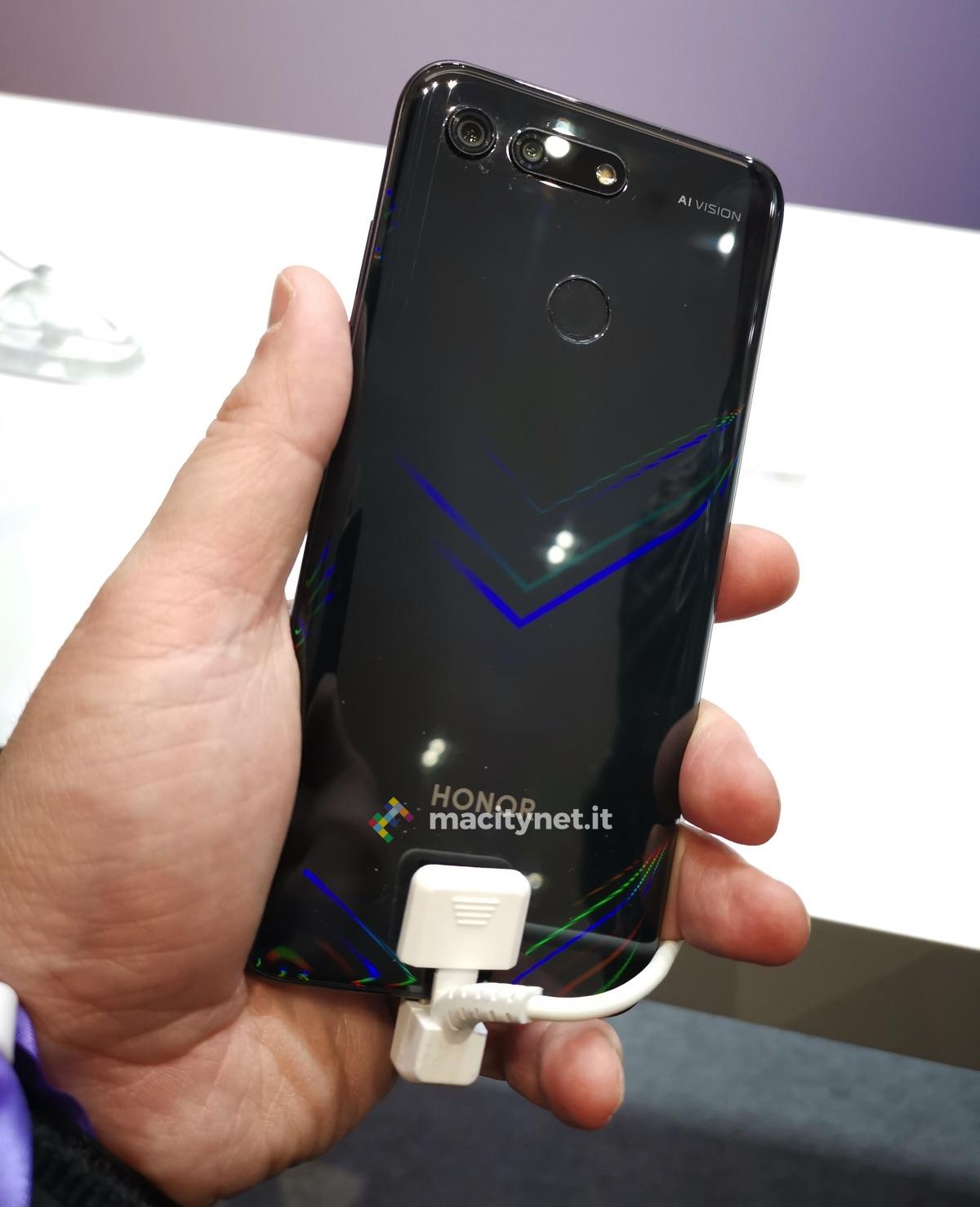 Come potete vedere dalle gallerie qui sotto il tratto distintivo del nuovo modello top di Honor è la fotocamera frontale da 25 Mpixel collocata dietro un foro di soli 4.5 mm che dovrebbe eliminare quello che per molti è il fastidioso “notch” o tacca centrale posizionandosi in un’area che offre meno disturbo anche per chi gioca con il proprio smartphone. Il bordo nero dello schermo che pur non essendo un OLED offre un elevatissimo contrasto ed un’ottima gamma cromatica non ha lo stesso spessore su tutti i lati e la curvatura cambia nella parte bassa del dispositivo ma l’effetto complessivo è d’impatto.