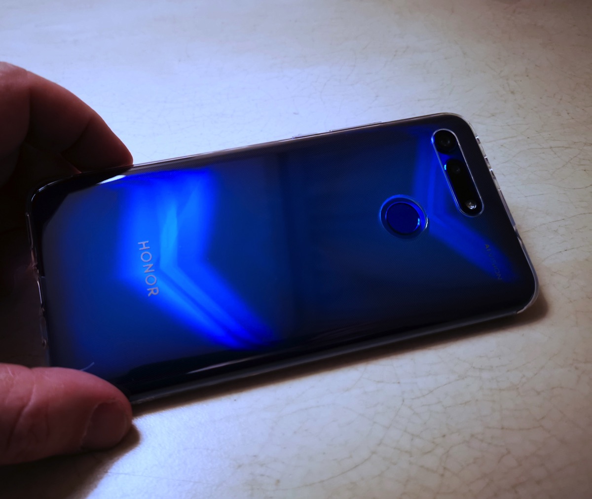 Ma è sulla finitura del retro del telefono che Honor gioca le sue carte sul lato estetico: grazie ad un rivestimento a nano particelle riesce a creare dei riflessi, in questo caso con un predominante effetto a “V” che fanno mutare di continuo la percezione della superficie. L’effetto è notevole sia sul modello blu che su quello rosso che allargano comunque la fascia riflessa mentre quello nero presenta delle linee più sottili ed “elettriche”.