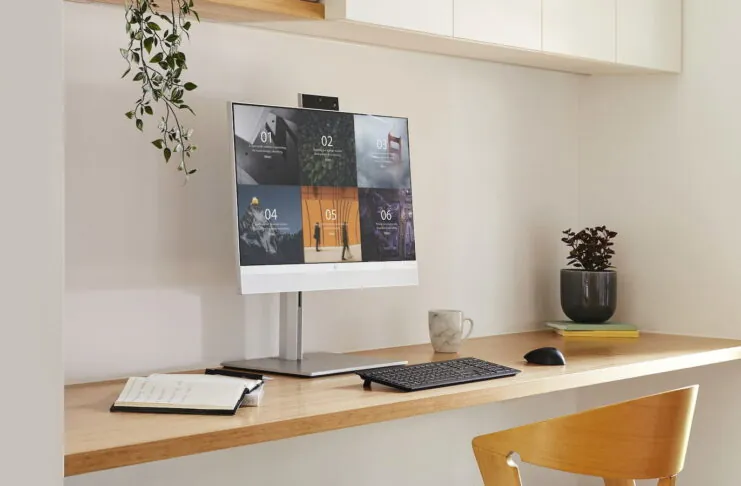 Il PC sarà disponibile con display da 23,8 pollici o 27 pollici, fino a 2560×1440 di risoluzione, con tecnologia antiriflesso. Ha una webcam pop-up da 5 MP a doppia faccia opzionale con varianti che offrono una fotocamera IR e un sensore ToF. La telecamera può seguire l’utente e il sistema utilizza il rilevamento delle scene per regolare le impostazioni in base ai livelli di luce. C’è anche una funzione di livellamento vocale dinamico, che manterrà il volume della voce coerente, sia che ci si allontani, o avvicini, dal microfono.
