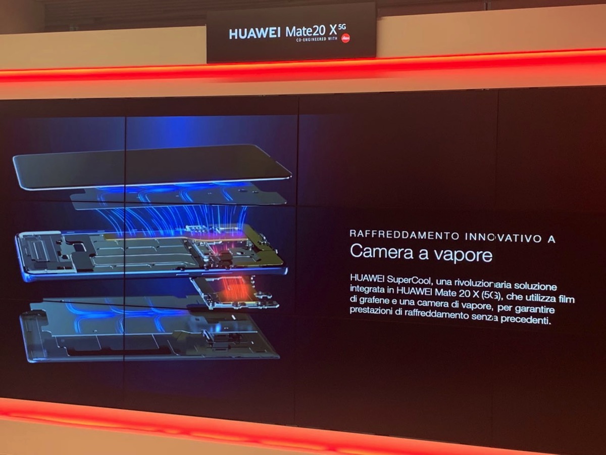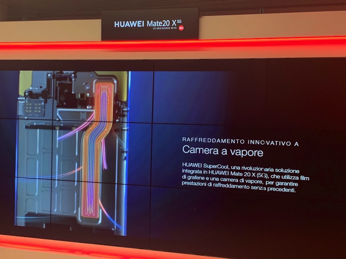 La differenza sostanziale con 20 X è ovviamente il modem visto che il processore Kirin 980 da 7 nm è lo stesso. A bordo del 20 X 5G c’è infatti il modem Balong 5000 che abbiamo conosciuto in precedenti eventi Huawei e che impone due importanti modifiche alla struttura del “cugino” con LTE: la riduzione delle dimensioni e della capacità della batteria che passa da 5.000 a 4.200 MAh e l’introduzione di un innovativo sistema di raffreddamento a Camera di Vapore con barre di Grafene che permette di gestire al meglio il carico del nuovo componente all’interno dello chassis.