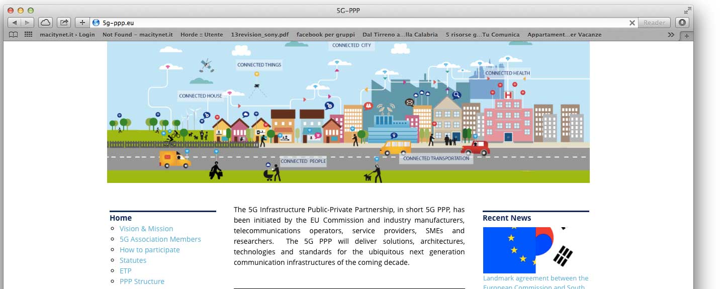 La 5G Infrastructure Association rappresenta le aziende private all’interno della 5G Public and Private Partnership (5G-PPP), un’iniziativa congiunta – del valore di 1,4 miliardi di Euro – della Commissione Europea e di aziende europee appartenenti al settore ICT e, che si pone come obiettivo principale lo sviluppo di una nuova generazione di reti di comunicazione in grado di fornire connettività ultra-veloce in Europa e nel mondo.