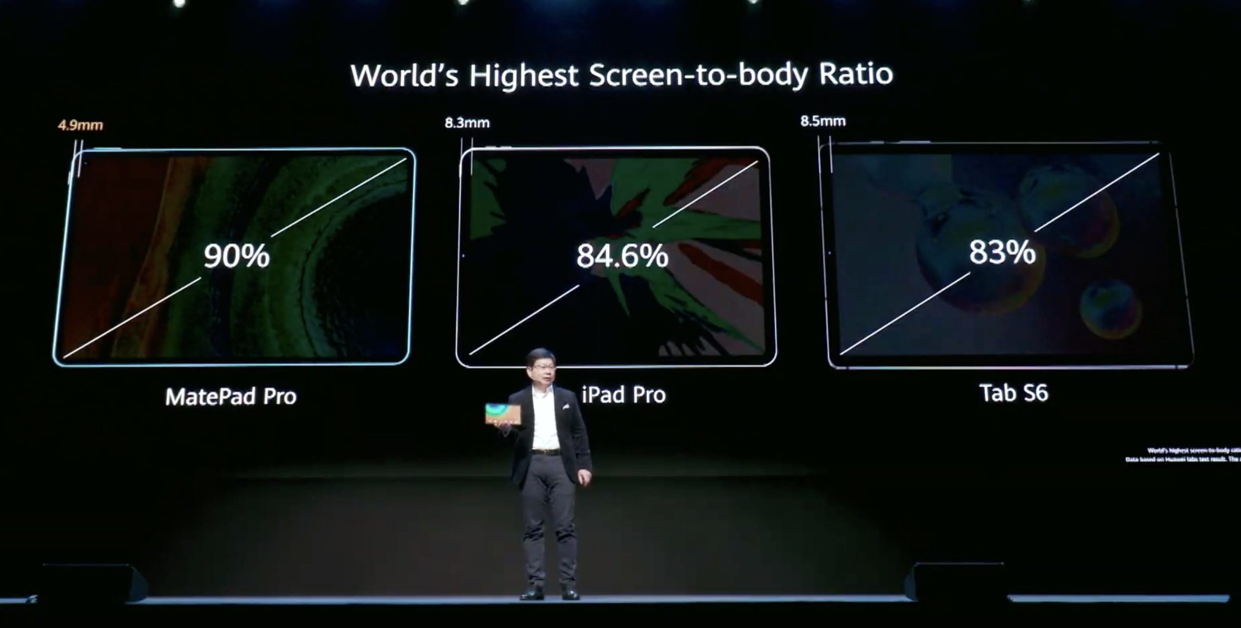 HUAWEI MatePad Pro abbina ad un ampio display delle cornici ridotte per raggiungere il rapporto schermo-cornice più alto del mondo: raggiunge il 90 percento con cornici ultra sottili da 4,9 mm che circondano il display da 10,8 pollici in formato 16:10. Utilizza un design unibody in cui le antenne sono incorporate nella cornice centrale e nel pannello posteriore