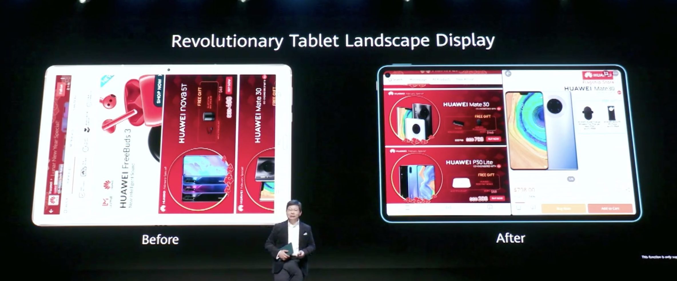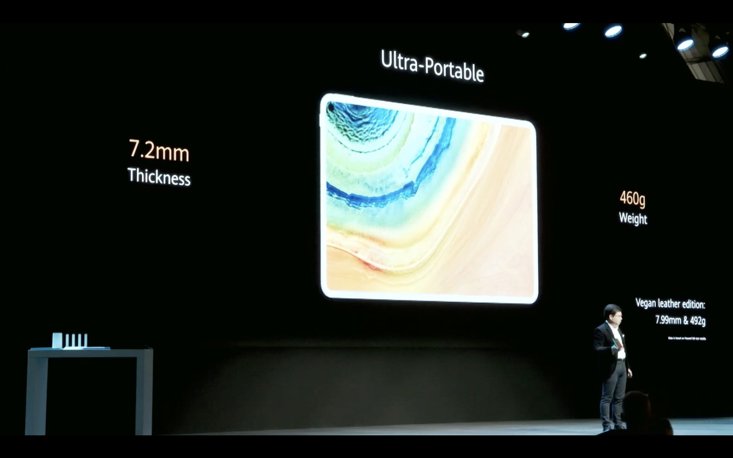 Il tablet è alimentato dal chipset di punta Kirin 990 da 7 nm, è dotato di EMUI10 e supporta Multi-Window, Multi-screen Collaboration e Multi HUAWEI APP (si possono far girare due occorrenze di una stessa applicazione). Supporta anche gli accessori HUAWEI M-Pencil e Smart Magnetic Keyboard, favorendo così la sinergia con la modalità PC.