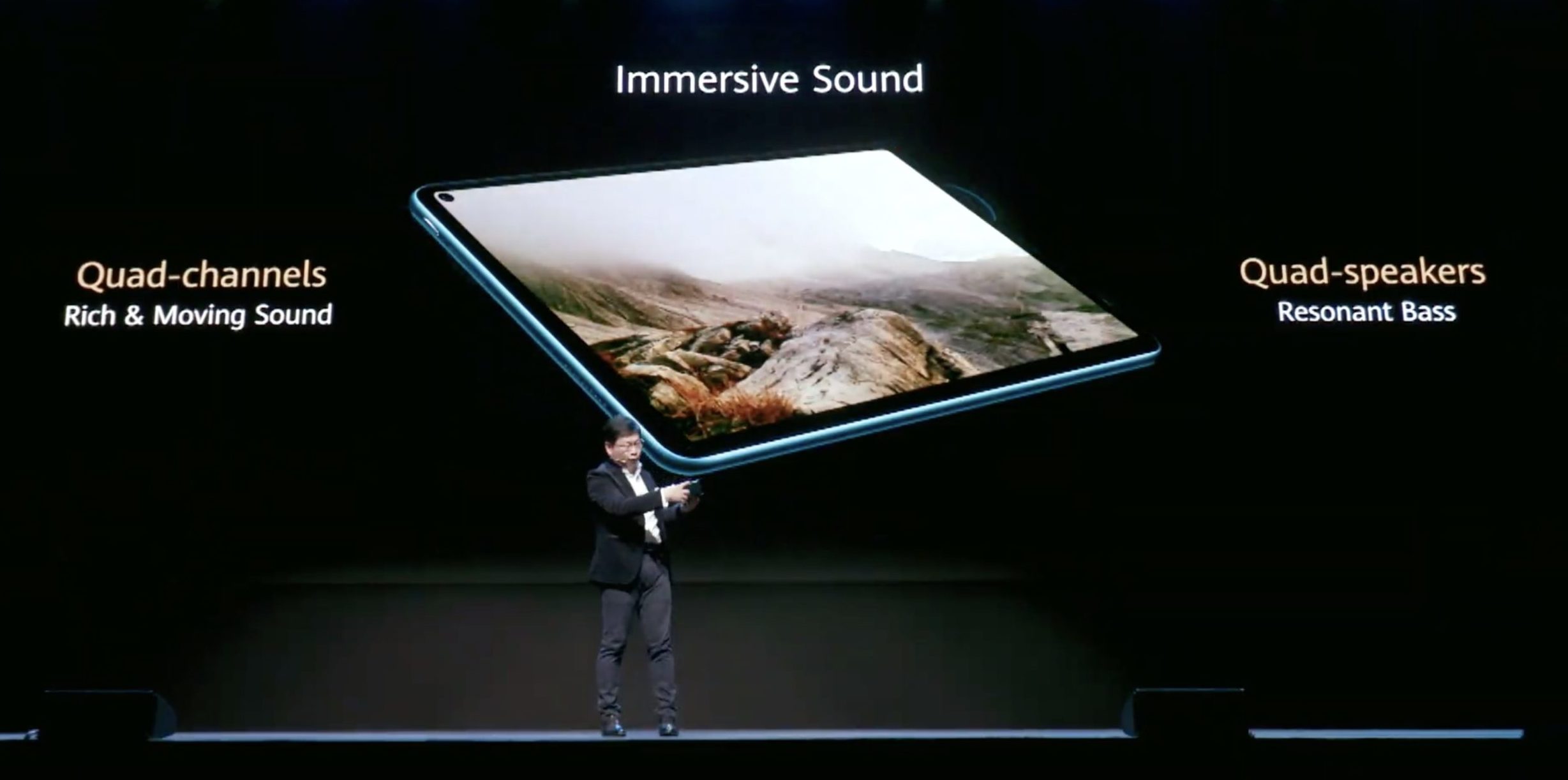 HUAWEI MatePad Pro supporta Histen 6.0 per guidare effetti sonori stereo 3D. Il quad-speaker quad-channel ad alta ampiezza sintonizzato da Harman Kardon.