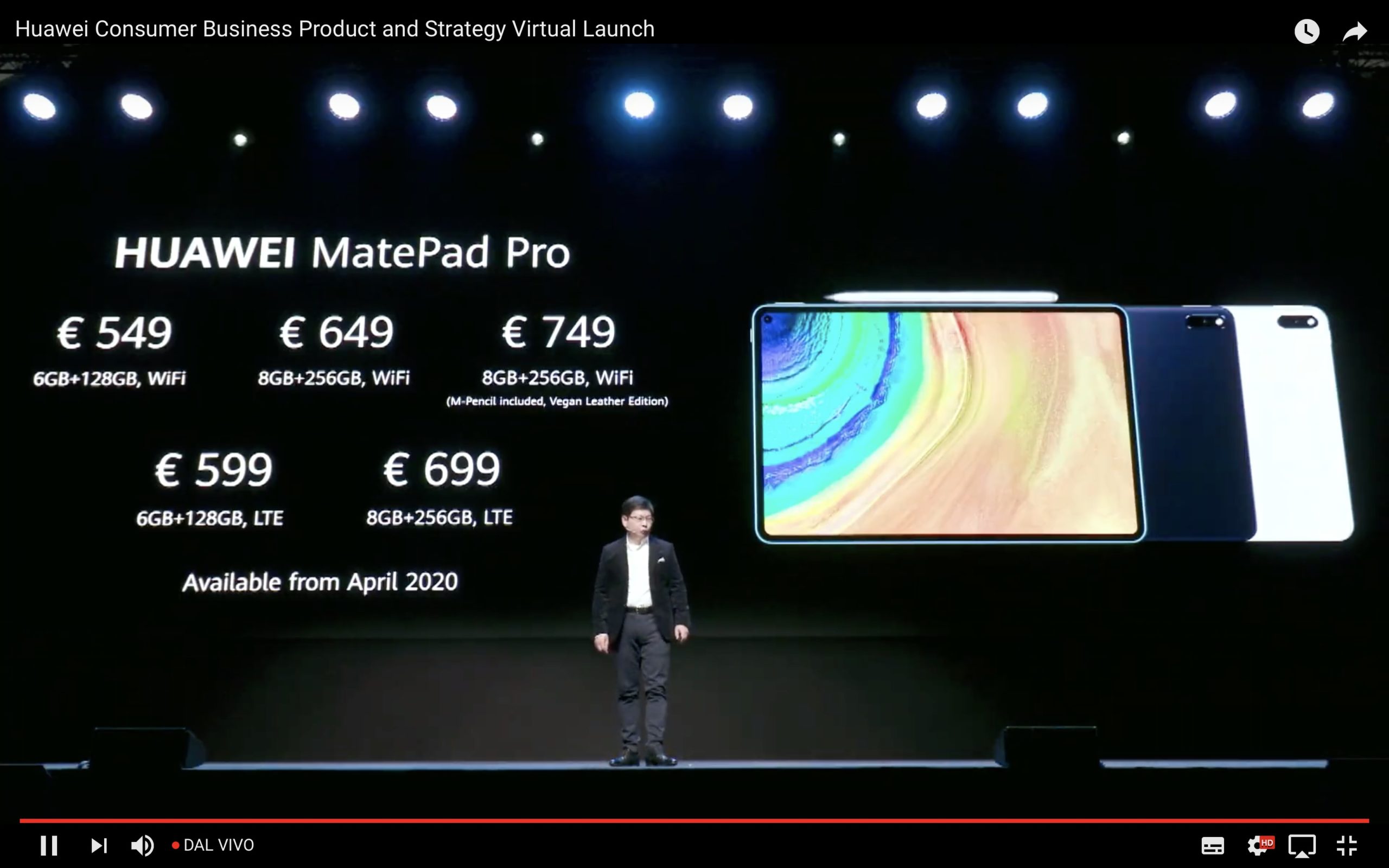 Huawei Consumer Business Group ha annunciato oggi con il suo keynote virtuale di Barcellona il lancio globale del nuovo HUAWEI MatePad Pro.