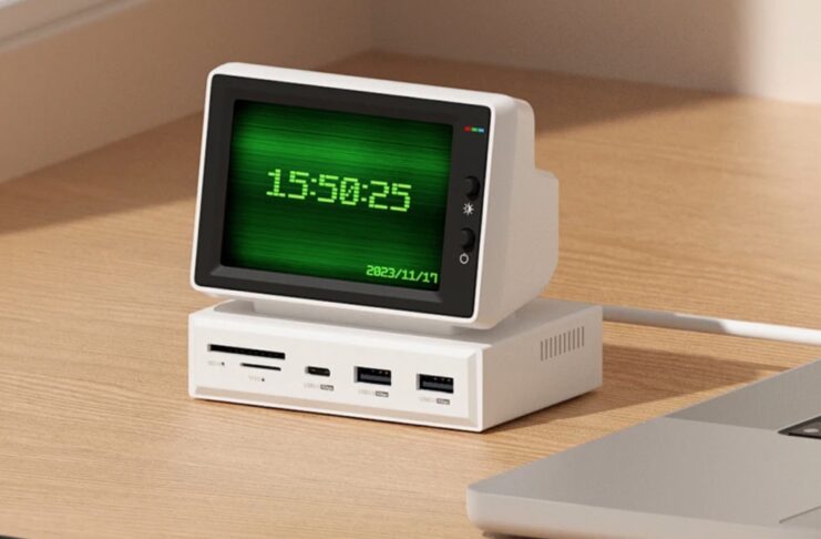 Gli ingombri sono di circa 10 x 10 x 7 centimetri e se avete già dato un’occhiata alle immagini pubblicitarie allegate vi sarete resi conto anche del fatto che ha un design del tutto particolare e molto carino da vedere: ha infatti l’aspetto di un computer retrò.