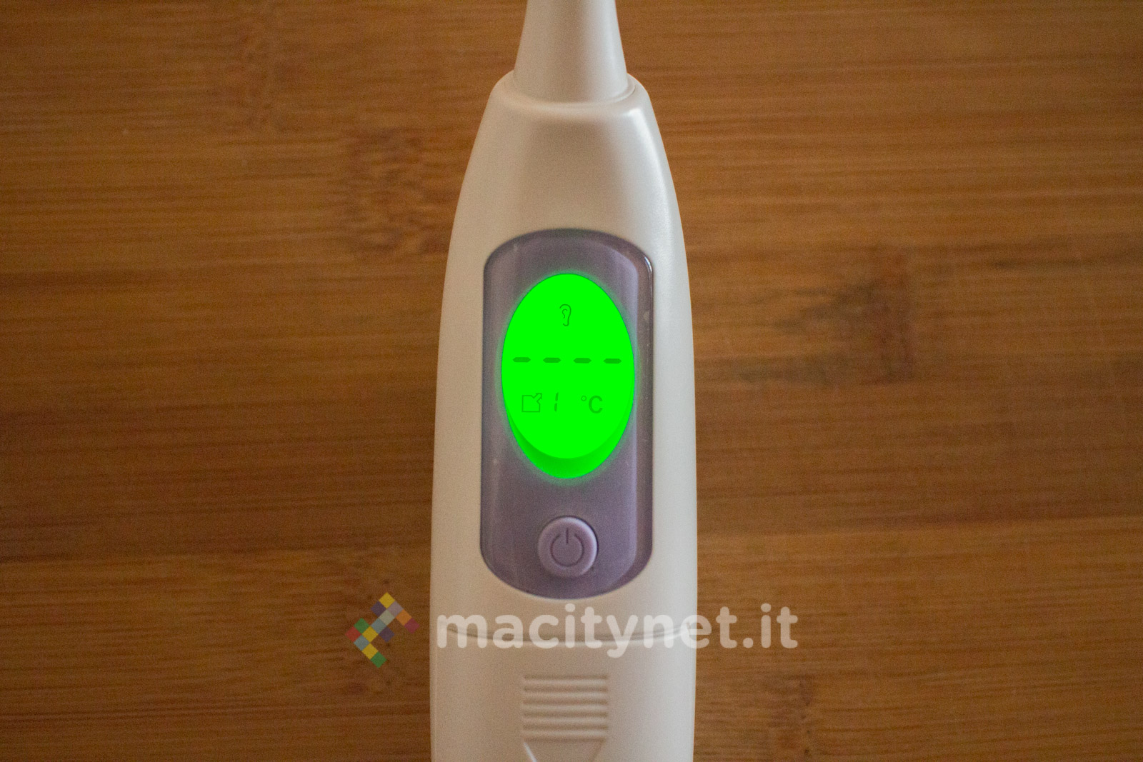 Altrettanto immediata l’accensione, che in 2–3 secondi completa l’attivazione del sistema e prepara il termometro per la misurazione della temperatura. Se ci si dimentica di spegnerlo, nessun problema: il termometro si spegnerà comunque automaticamente dopo 30 secondi.