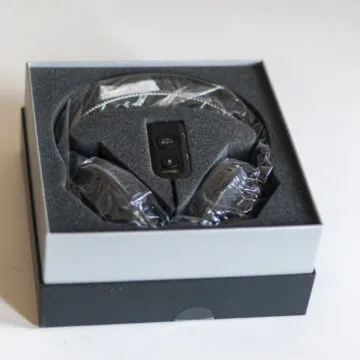 Le cuffie, che avevamo già avuto modo di scoprire durante la presentazione a Milano, si presentano in modo “autorevole” già a partire dalla confezione: una volta tolta la copertura in cartone con la grafica, il cofanetto griffato interno si apre lasciando intravedere le cuffie, immerse in una culla morbida, i cavi di contorno, la scheda audio esterna (di cui parleremo tra poco) e un piccolo manuale introduttivo utile per capire le prime fasi di configurazione, tutt’altro che da sottovalutare.