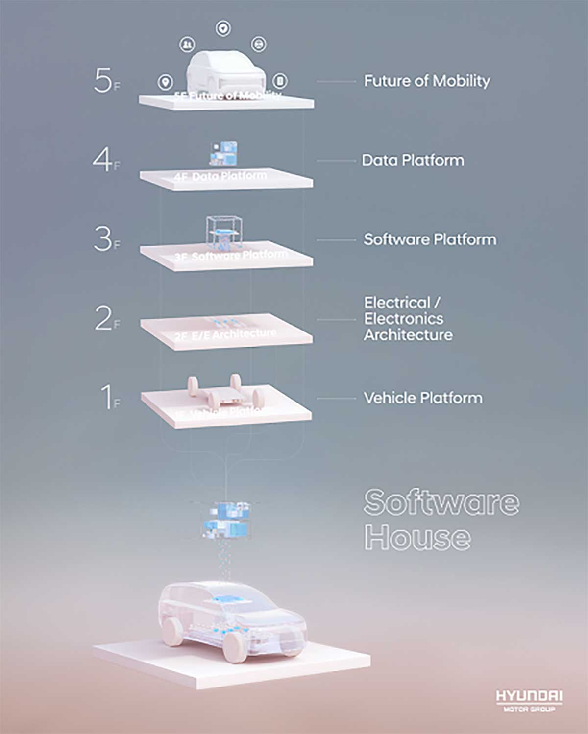Dal 2023, tutte le nuove auto prodotte da HMG saranno attrezzate per ricevere aggiornamenti software Over-The-Air (OTA) che consentiranno ai clienti di mantenere aggiornati i propri veicoli. Questa trasformazione si applicherà non solo ai modelli elettrici a batteria, ma anche a quelli con motore a combustione interna. Tutti i segmenti di veicoli del Gruppo venduti nel mondo si evolveranno per essere software-defined entro il 2025.