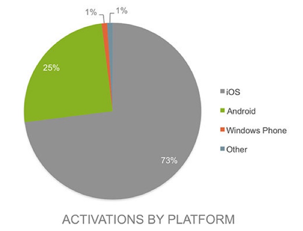 Se nel mercato consumer i dispositivi iOS sembrano destinati ad essere eterni secondi per volumi, anche se rimangono sempre i primi per profitti, nel mondo delle imprese la posizione della Mela risulta ancora più forte. Nell’ultimo trimestre del 2014 iOS conta per il 73% dei dispositivi attivati in ambito professionale, mentre Android cala a quota 25%.