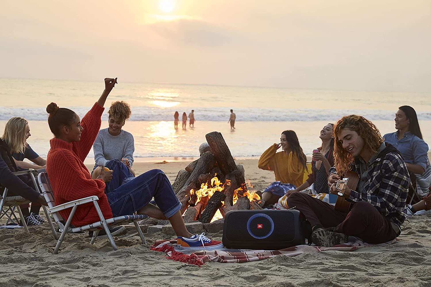 Integra due woofer da 70 mm, due tweeter da 20 mm e radiatori passivi che contribuiscono a una resa sonora vigorosa e ricca di presenza. È perfetto per una festa in giardino o a bordo piscina grazie alla certificazione IP67 e alla cinghia con gancio multifunzione. La separazione stereo è buona grazie alla larghezza del corpo, mentre solidità e resistenza lo rendono un compagno ideale per eventi con molti partecipanti.