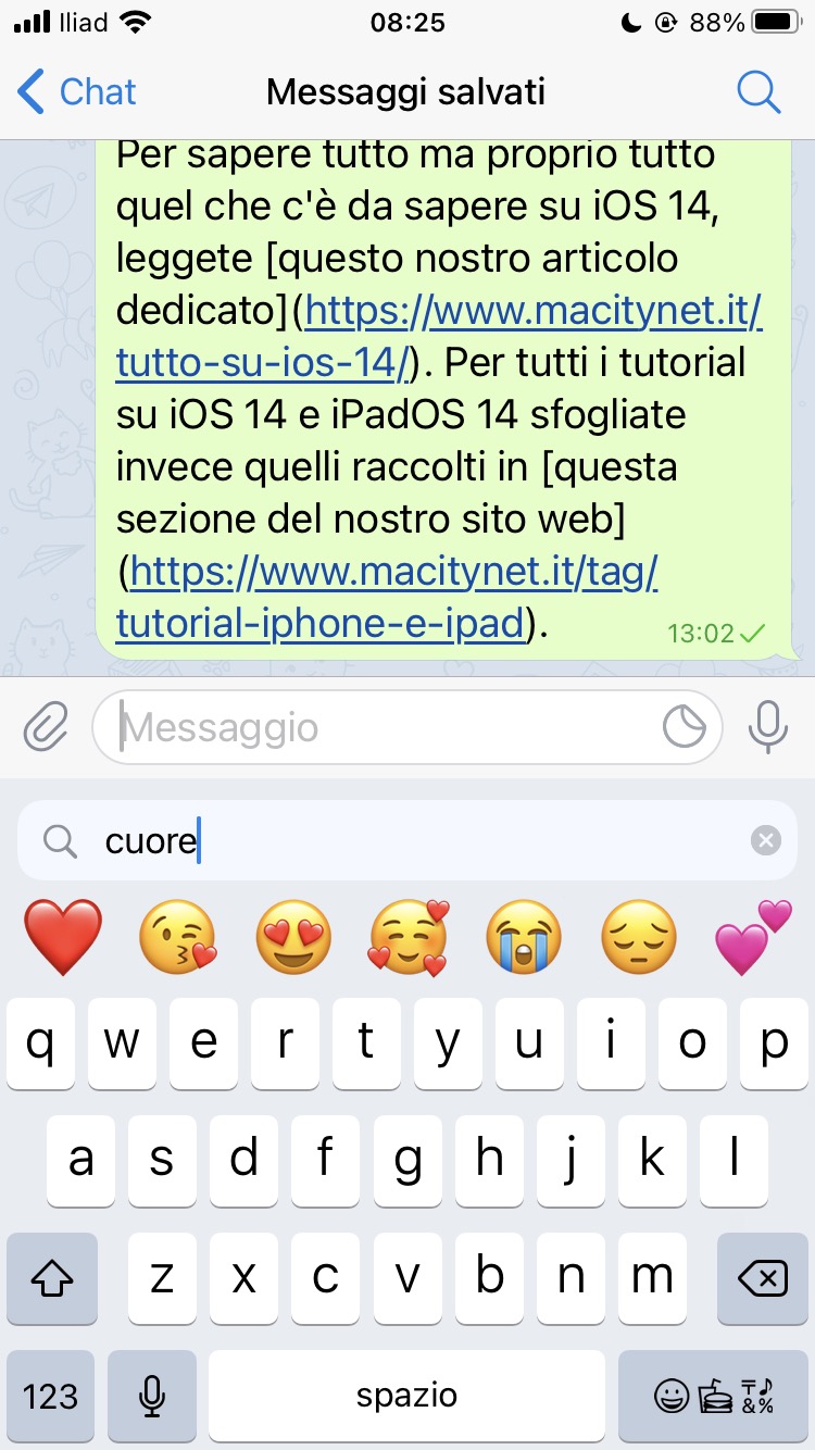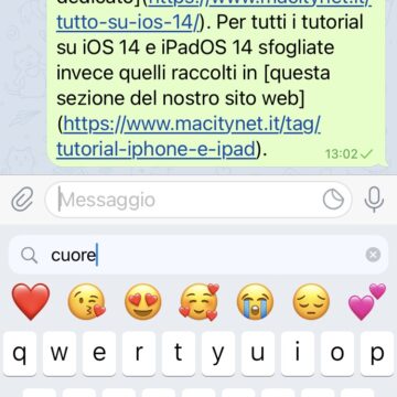 Se non trovate l’emoji a cui state pensando, potete digitarne la parola chiave attraverso la nuova funzione Cerca emoji. La trovate integrata nella tastiera, subito sopra l’elenco di tutte le emoji disponibili.