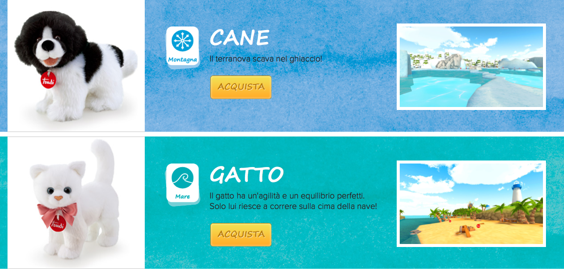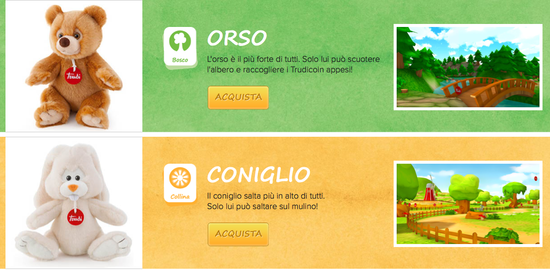 I quattro peluche dello starter kit di Trudiland – cane, coniglio, orso e gatto – che consentono di attivare i quattro mondi di Trudiland si possono acquistare sullo Store Trudi a 39,99 euro. I peluche degli Extension kit – diciotto piccoli animaletti – invece costano 9,99 euro.