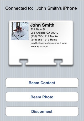 Su App Store è disponibile iBeam, applicazione che si occupa proprio dello scambio di contatti fra utenti. Tre sono le modalità di utilizzo di iBeam: la prima è il wi-fi, con cui due possessori di iPhone potranno scambiarsi i dati di uno più contatti.