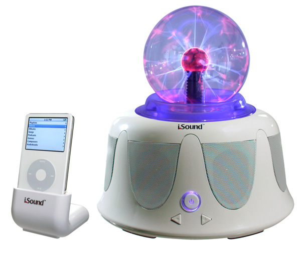 Molti di voi si saranno chiesti quale utilità potessero mai avere quelle strane sfere al “plasma” con all’interno un caos di raggi luminosi che si agitano vorticosamente. La risposta potrebbe essere “nessuna”, o poteva esserlo almeno fino all’avvento dell’iSound Plasma, un sistema di speaker completa di palla al plasma. Connettendo l’iPod alla base dock, la vostra musica sarà accompagnata dal danzare dei raggi luminosi, che continueranno ad agitarsi nervosamente a suon di musica.