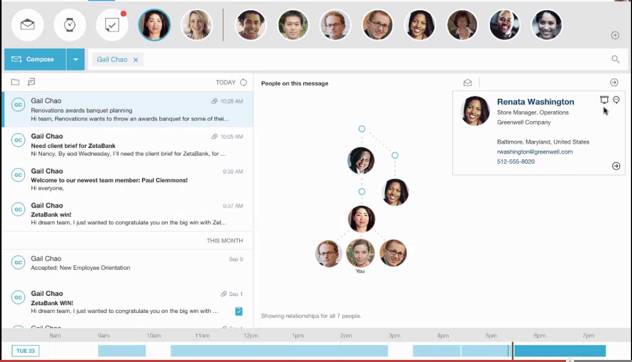 Anche se la posta elettronica ha rappresentato uno dei più grandi progressi nella produttività dei dipendenti nel corso degli ultimi 30 anni, si è trasformata oggi in uno degli oneri più pesanti a livello organizzativo. Gli analisti stimano che vengano inviate ogni giorno 108 miliardi di email di lavoro, che richiedono mediamente al dipendente di controllare la propria casella di posta 36 volte all’ora. Ad aggravare il problema, si stima inoltre, che solo il 14 per cento delle mail rivesta fondamentale importanza. In un’epoca in cui ogni organizzazione si sforza di essere più efficiente, social e collaborativa, il volume di interazioni via e-mail supera ancora di gran lunga la collaborazione social. In effetti, secondo IDC, le e-mail rimangono il singolo strumento di collaborazione più utilizzato, con un fatturato a livello mondiale per la posta elettronica aziendale che dovrebbe raggiungere i 4,7 miliardi di dollari nel 20171.