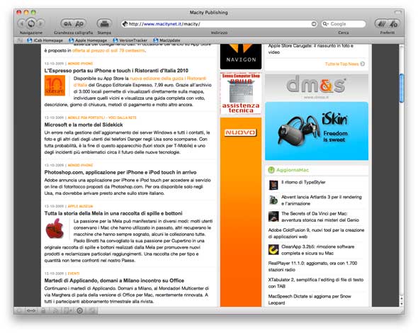 Il programmatore tedesco Alexander Clauss continua imperterrito lo sviluppo del piccolo e agile browser alternativo ed è da oggi disponibile una nuova release. La nuova versione 4.7 è disponibile ora come applicazione a 32 bit (per Mac OS X dal 10.3.9 al 10.6.x) e come applicazione a 64 bit (per Mac OS X 10.5.x o 10.6.x). Tra le novità di questa release, la localizzazione in italiano, la disponibilità di una funzione di “Undo” (Annulla) per l’eventuale chiusura non voluta dei tab e la risoluzione di piccoli e vari bug della versione precedente. Tra le numerose funzioni che da sempre hanno contraddistinto questo prodotto, ricordiamo: un’ottima gestione dei Preferiti, la toolbar personalizzabile, la funzione di auto-completamento, la gestione dei cookies, il filtro per la gestione dei contenuti, il download manager (è possibile eseguire il download delle pagine web, selezionando il materiale e la “profondità ” dei link e visualizzare il contenuto off-line, senza bisogno di essere collegati).