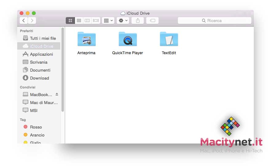 In OS X 10.10 Yosemite, lo ricordiamo, iCloud Drive sarà integrato nel Finder permettendo di archiviare in sicurezza file di qualsiasi tipo in iCloud. Il sistema funziona alla stregua di qualsiasi altra cartella sul Mac, permettendo quindi di trascinare dentro i documenti, organizzarli con le cartelle e Tag e cercarli utilizzando Spotlight.
