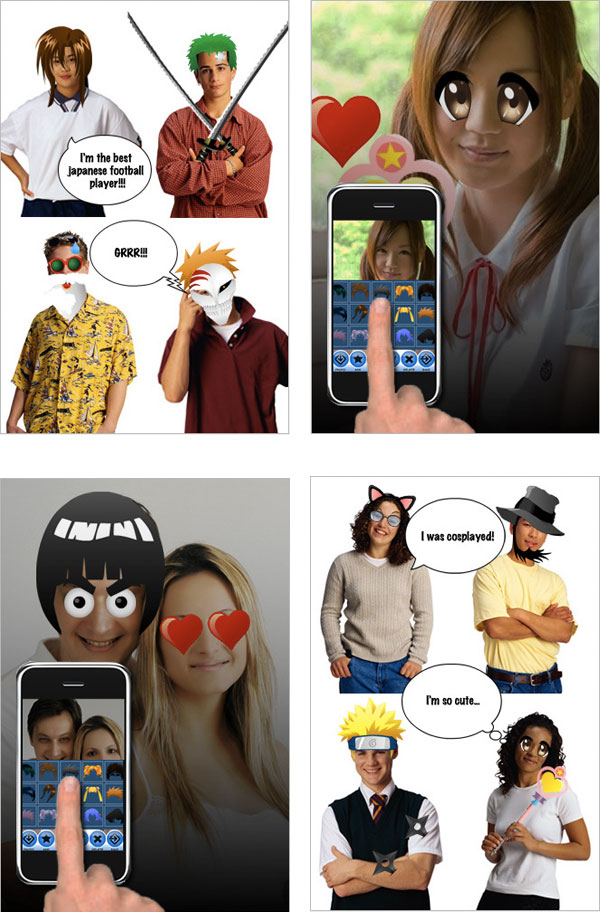 Per trasformare un amico o un familiare in un perfetto personaggio manga è sufficiente lanciare iCosplay, selezionare la foto su cui desideriamo intervenire oppure scattarne una al volo se stiamo utilizzando iPhone. Il programma offre un’ampia collezione di elementi grafici tra cui scegliere che possiamo ruotare, ingrandire e ridurre fino a raggiungere il risultato desiderato.