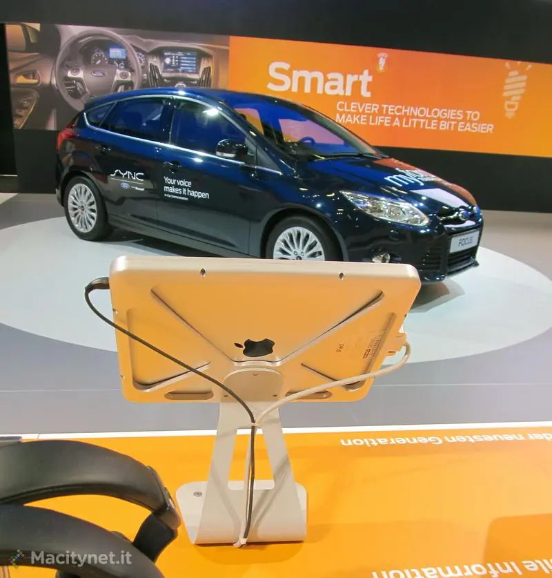 Interessante notare come, nonostante gli accordi con Microsoft per sfruttare la tecnologia Windows Embedded Automotive, molte dimostrazioni erano fatte… con l’iPad.