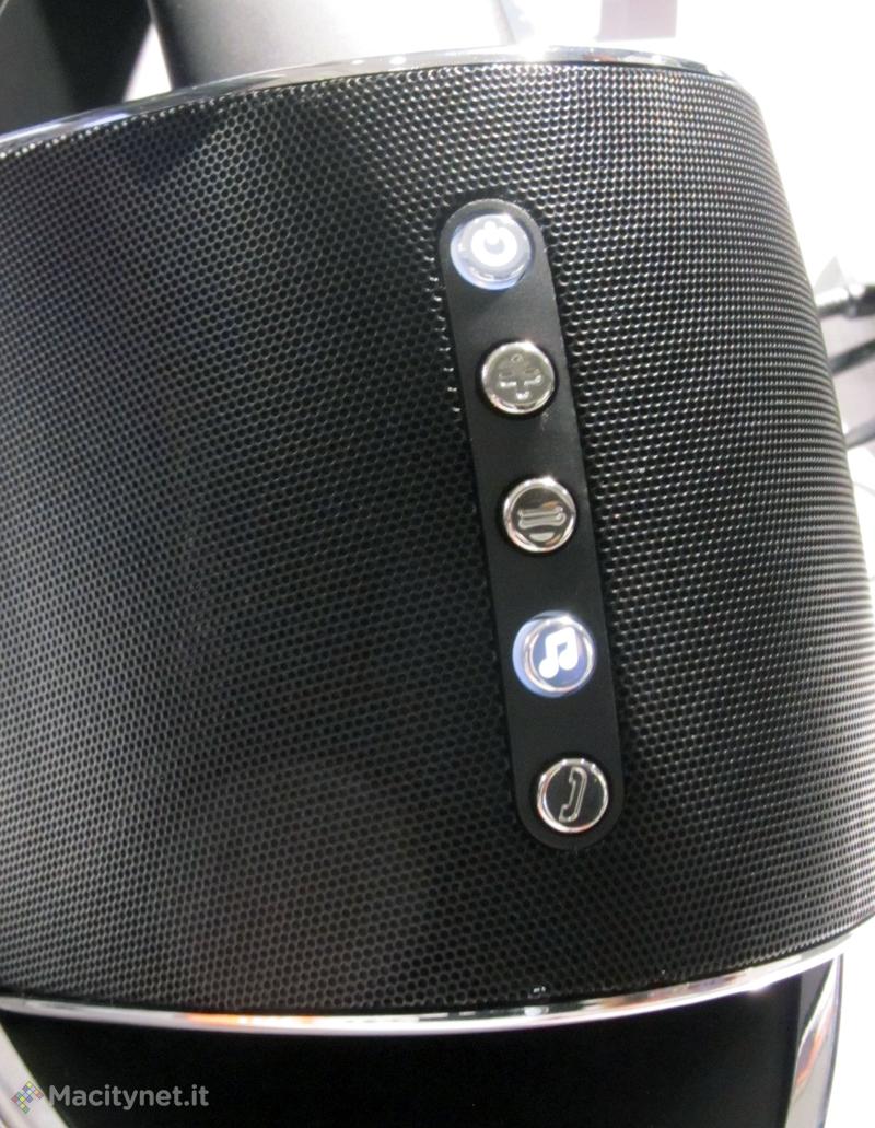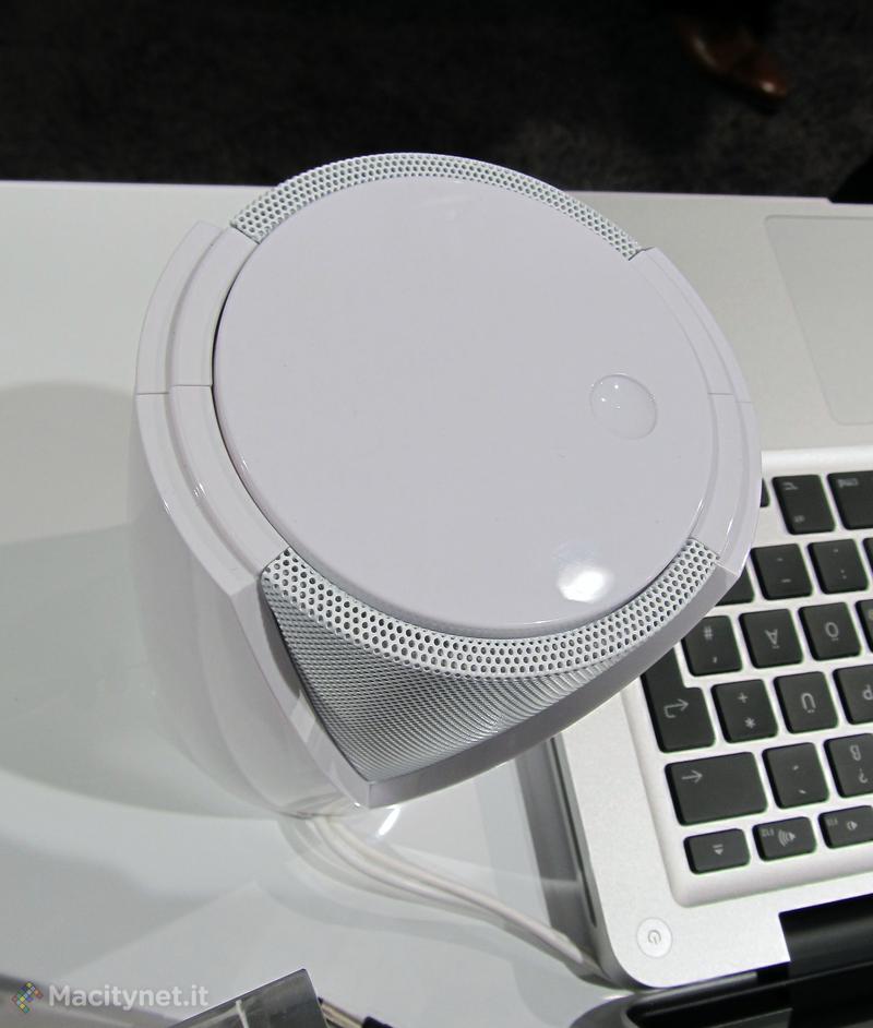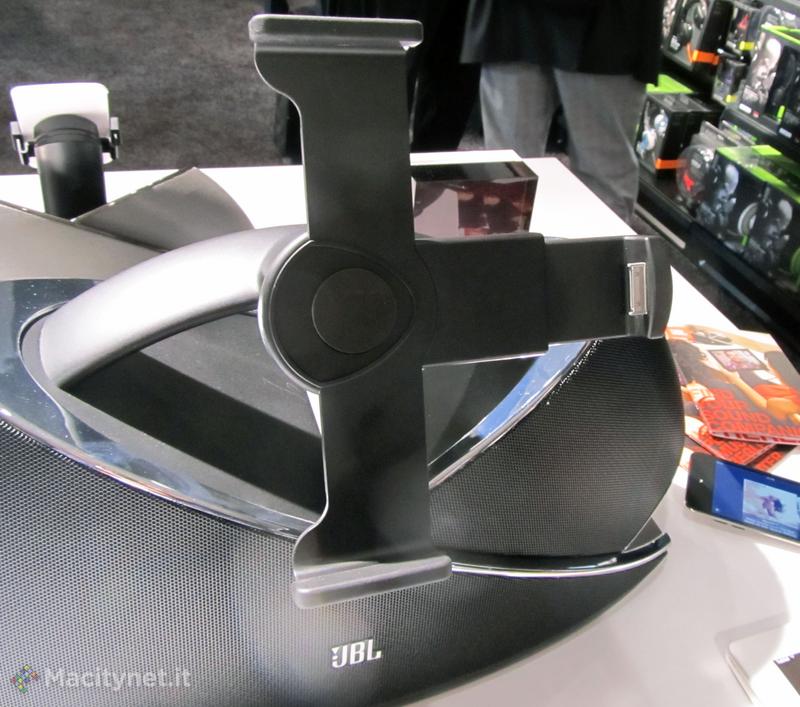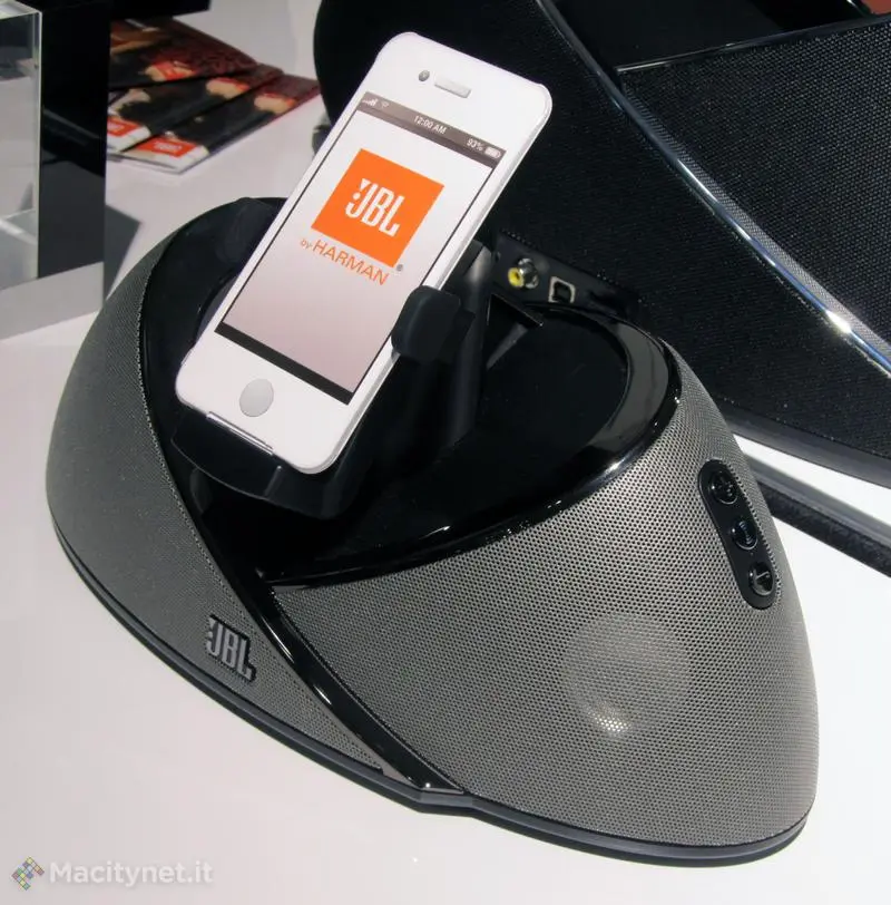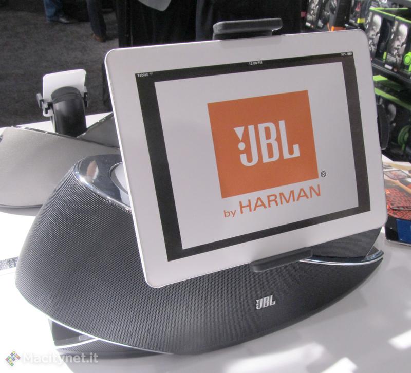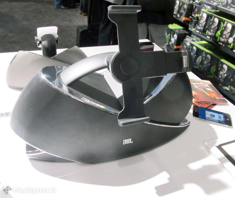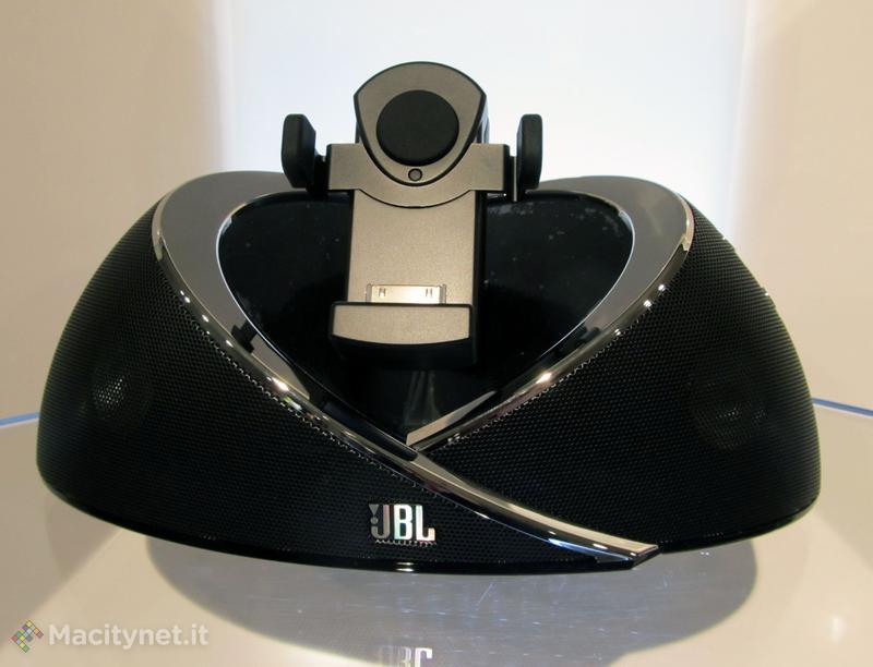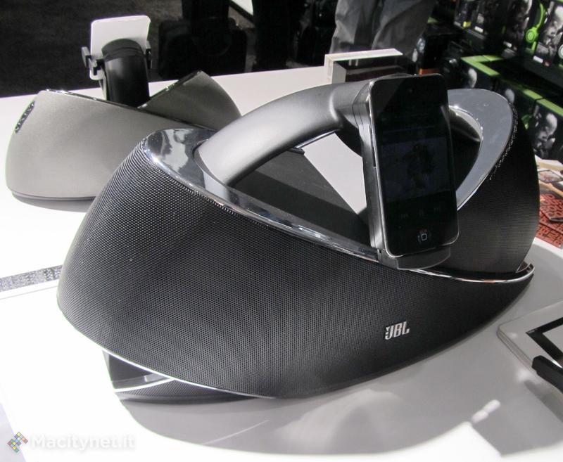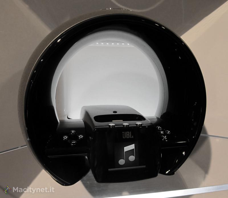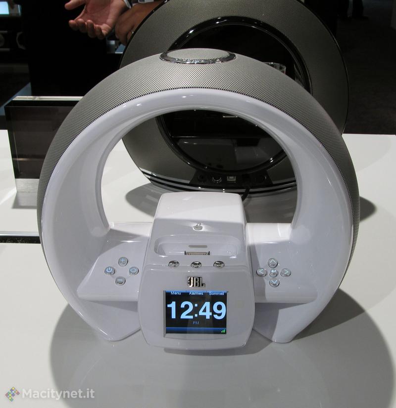 Altro prodotto visto (non nuovo ma sempre interessante) è l’On Air Wireless che vanta interessanti caratteristiche come la funzione orologio/allarme e il display a colori (comodo per visualizzare le copertine degli album a colori e le informazioni su brani e artisti). Caratteristica principale è il supporto per lo streaming usando una rete wireless e con il quale è possibile ottenere accesso alle librerie di canzoni su Mac, iPhone, iPad o iPod e anche alle radio Internet sintonizzate da iTunes. La connessione al dock ricarica la batteria di iPod e iPhone; non manca una radio FM RDS con dieci stazioni radio preimpostate, la già citata sveglia con doppio allarme, un telecomando multifunzione e un ingresso ausiliario. I comandi per la navigazione e la riproduzione possono essere gestiti anche tramite l’applicazione Remote di Apple. Tecnicamente JBL On Air Wireless ha due driver full range e un tweeter, la risposta in frequenza è di 20 Hz – 20 kHz. Il dock è compatibile con gli iPod nano dalla terza all’ultima generazione, con tutti gli iPod touch fino alla quarta e ultima, con gli iPod classic e tutti gli iPhone. Il prezzo di listino si aggira sui 270,00 euro.