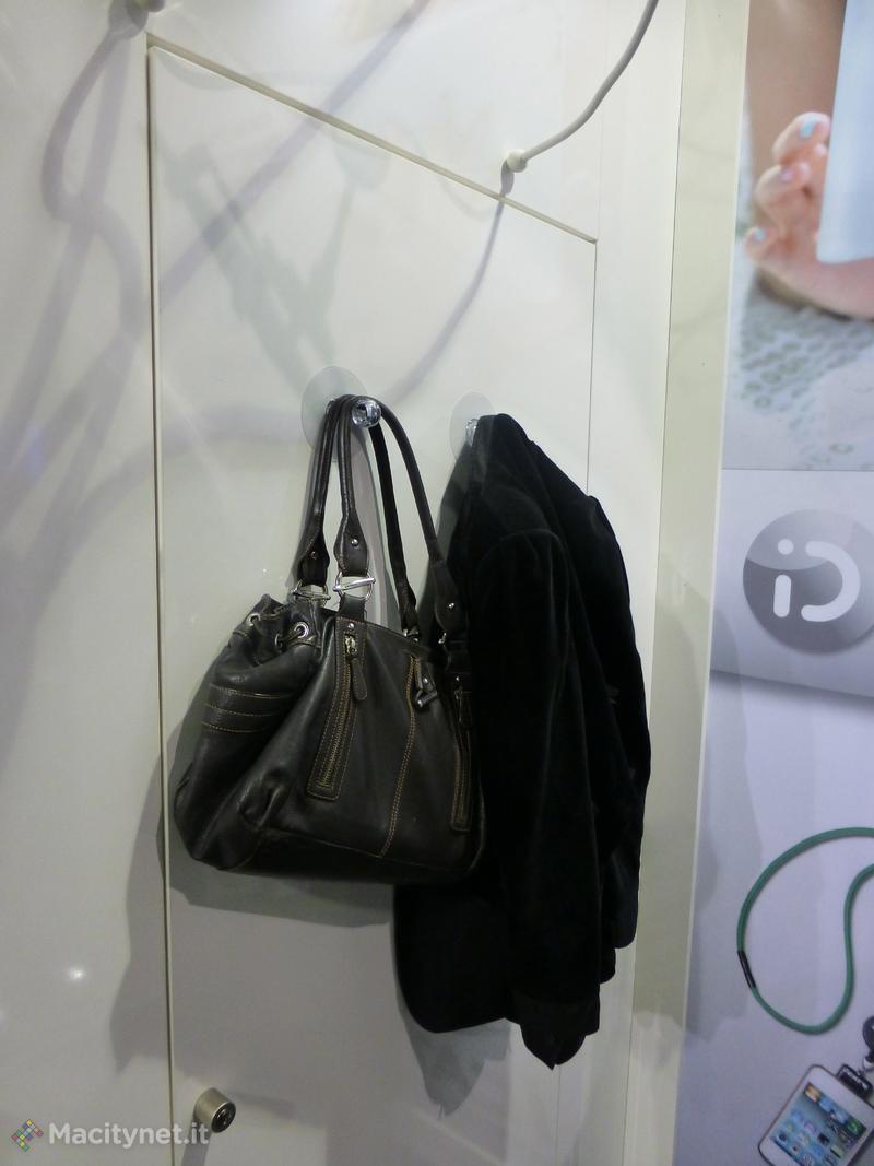 Per mostrarne il funzionamento efficace, buona parte dello stand dell’IFA di iDeacosy è stato allestito utilizzando Huk: così per la parete dedicata alle cover di iPhone, per sospendere iGet in alto e anche come portaborse e porta abiti. Huk è proposto al prezzo di circa 10 euro. Per ulteriori informazioni è possibile visitare il sito iDeacosy.