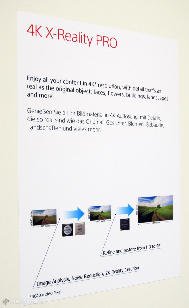 Abbiamo potuto provare direttamente il TV allo stand Sony in varie postazioni che ne mettevano in risalto le prestazioni e la capacità di upscaling da 2K a 4K grazie agli avanzanti algoritmi di Sony è verametne stupefacente e permette di utilizzare i contenuti video attualmente disponibile attraverso Blu-Ray e satellite con una qualità che ci ha sorpreso.