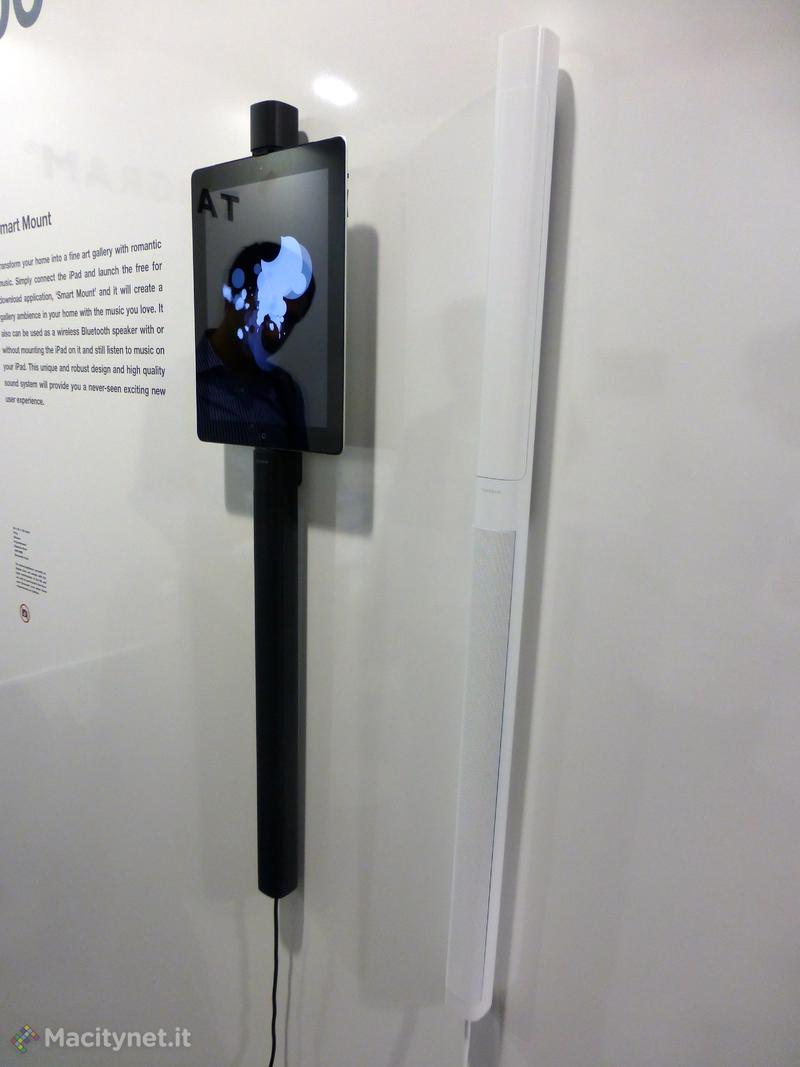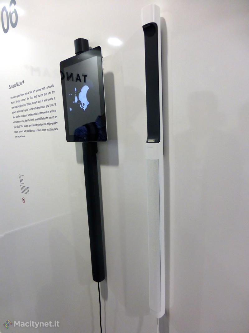 Lo Smart Mount può essere ammirato in funzione presso lo stand di Tangram all’IFA di Berlino. La musica del tablet è riprodotta attraverso un potente sistema di speaker stereo con una potenza di 40 Watt, notevole per un accessorio così piccolo e compatto. Oltre alla riproduzione di audio e video, una volta inserito nello Smart Mount, iPad può essere impiegato come cornice fotografica. Ricordiamo infine la presenta del Bluetooth che permette di sfruttare il sistema stereo integrato nello Smart Mount per riprodurre musica anche da iPhone e iPad quando non sono fisicamente connessi al sostegno da parete.